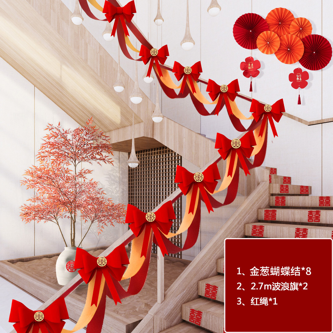 gold leaf bowknot 8+2 2 m wave flags + red rope