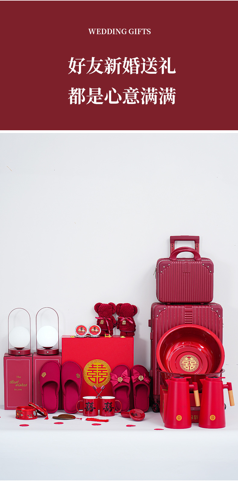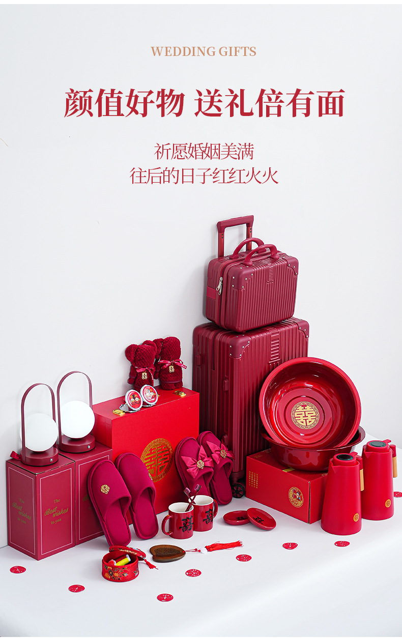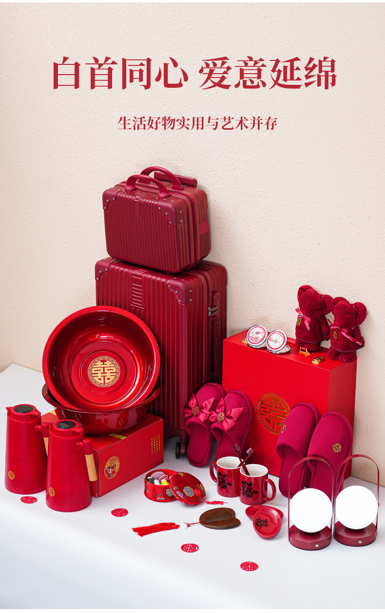 double happiness cup 28-piece set-20-inch suitcase set (extra large wooden gift box)