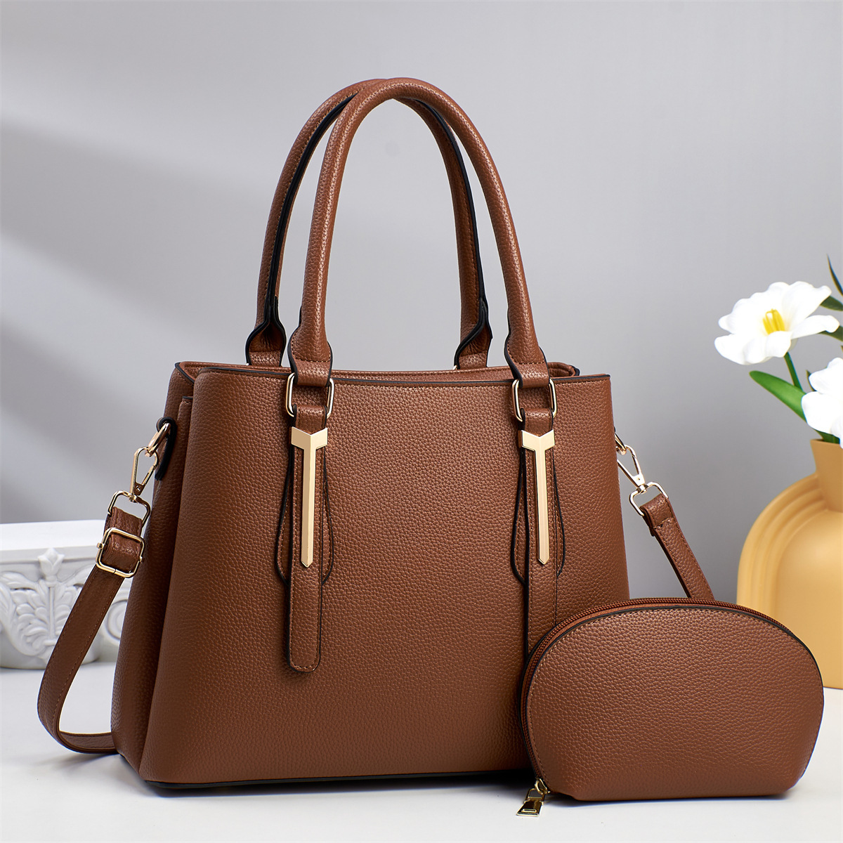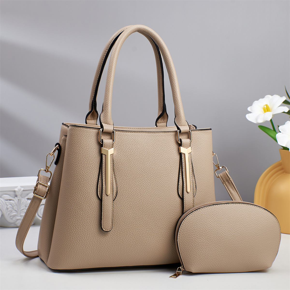 Large capacity, high-end fashion trend, mom lady single shoulder bag, elegant and simple, contrast color handbag