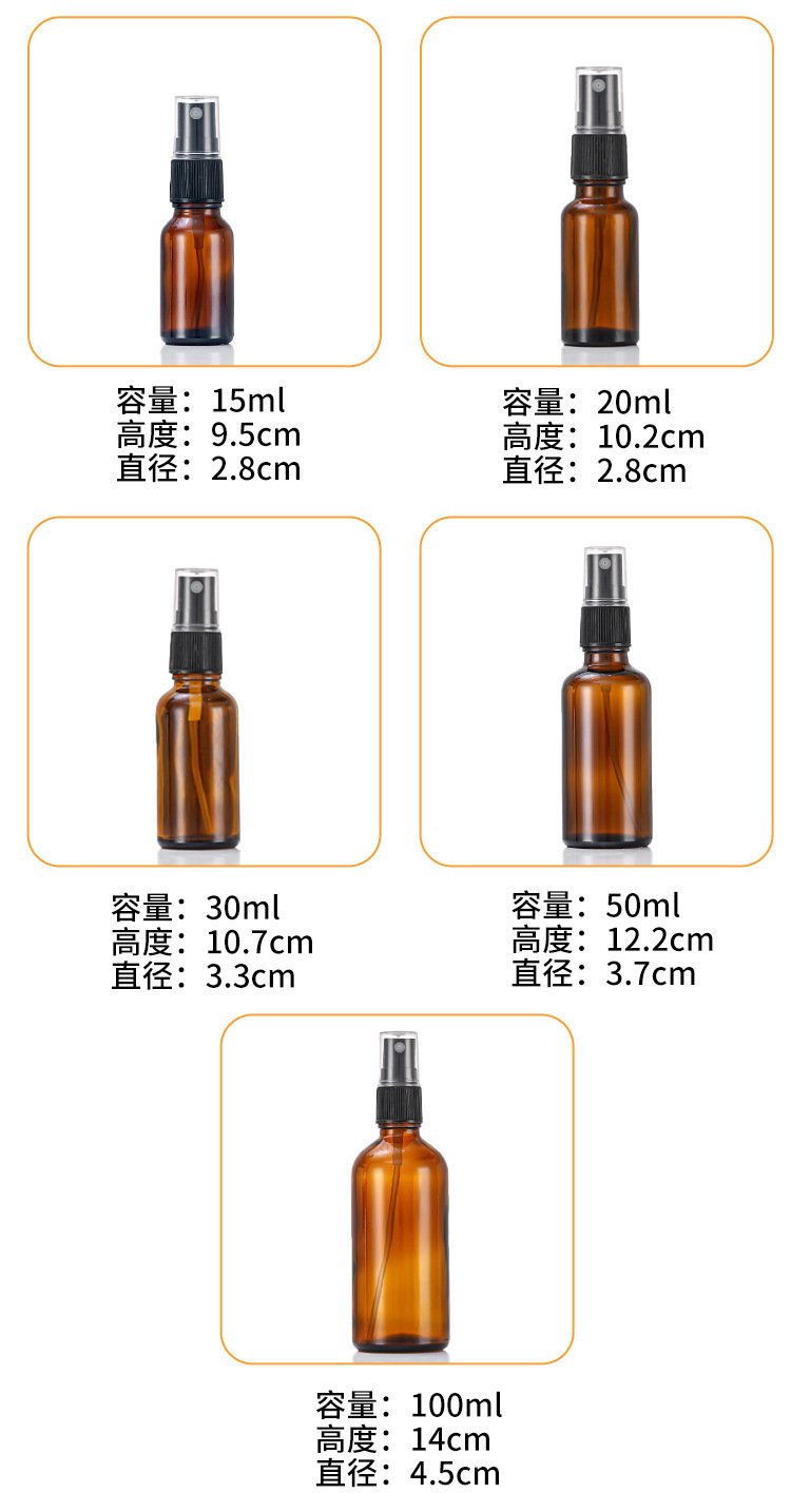100ml; brown atomizing spray head; glass
