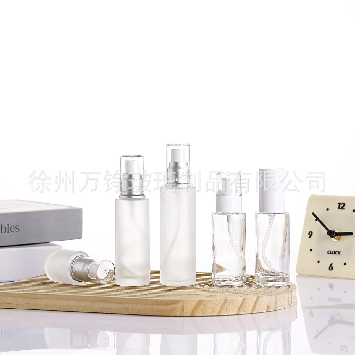 100ml frosted; wood grain cover + bottle; glass