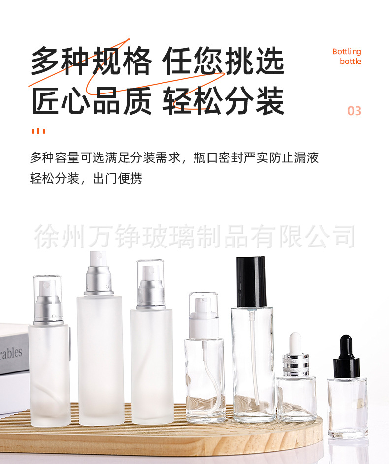 50ml frosted; double-line silver cap + dropper + bottle; glass
