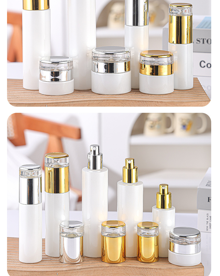 30ml gold cover cream bottle; white; glass