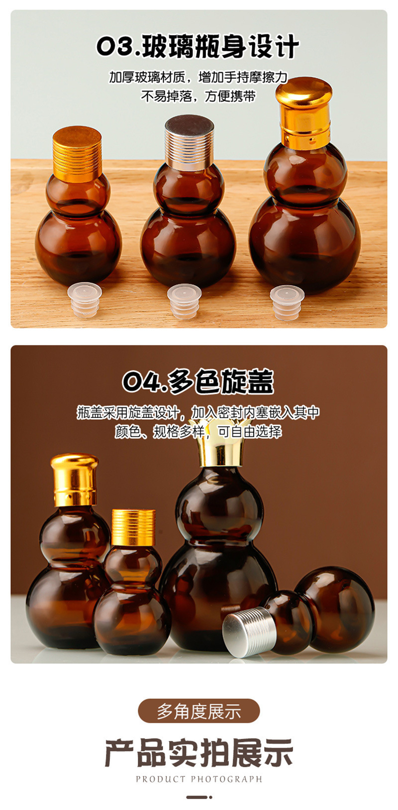 golden surface cover with inner plug; 50ml; glass