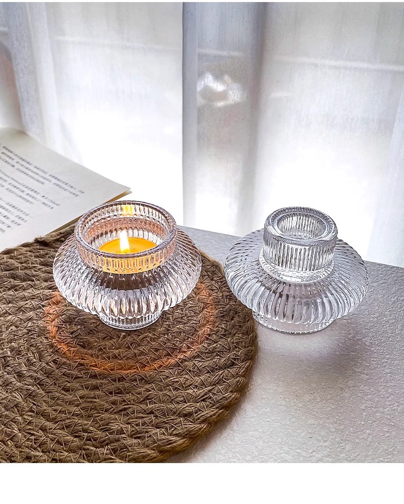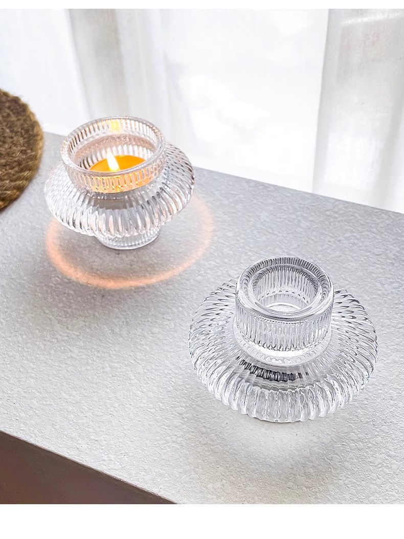 fine grain flying saucer-dual-purpose crystal glass candlestick; transparent