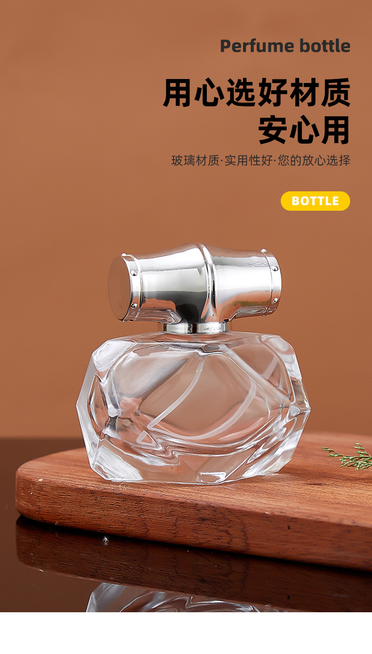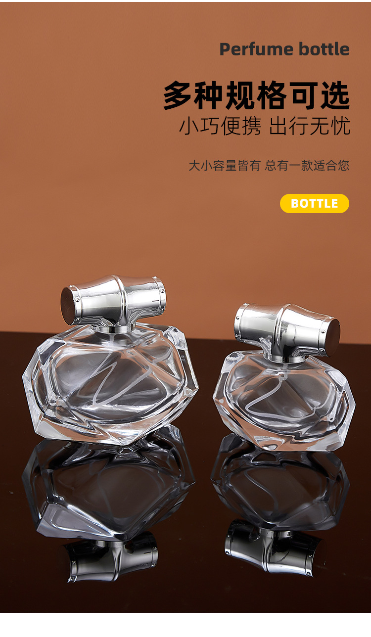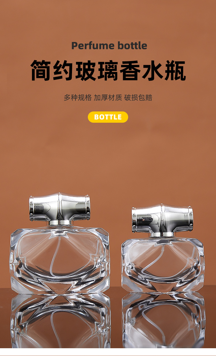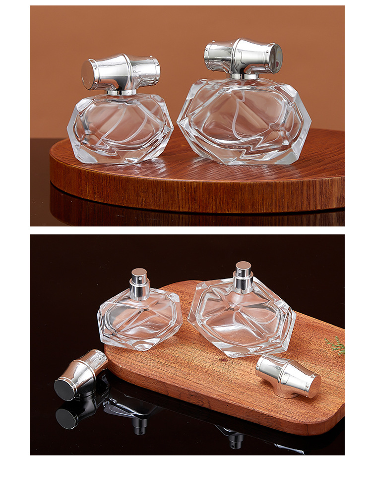 80ml bottle + silver spray (plastic card) + silver cap; transparent; glass