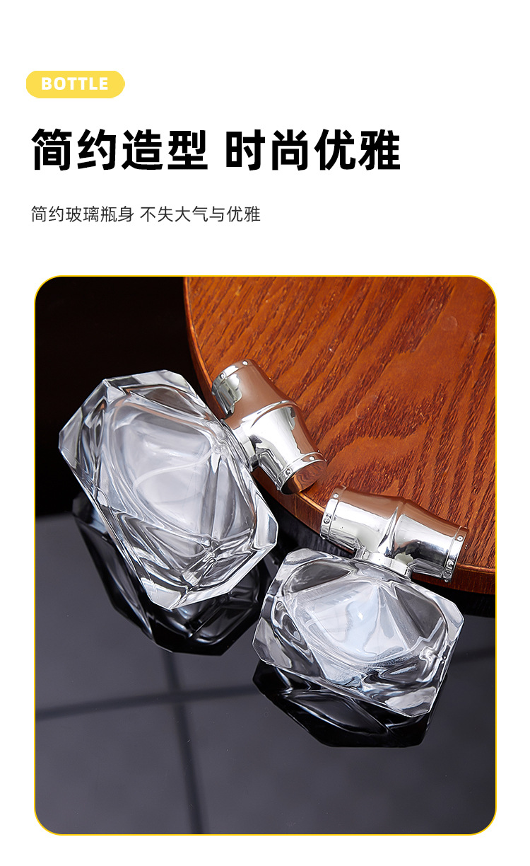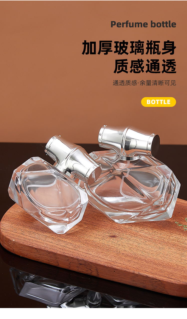 30ml bottle + silver spray (plastic card) + silver cap; transparent; glass