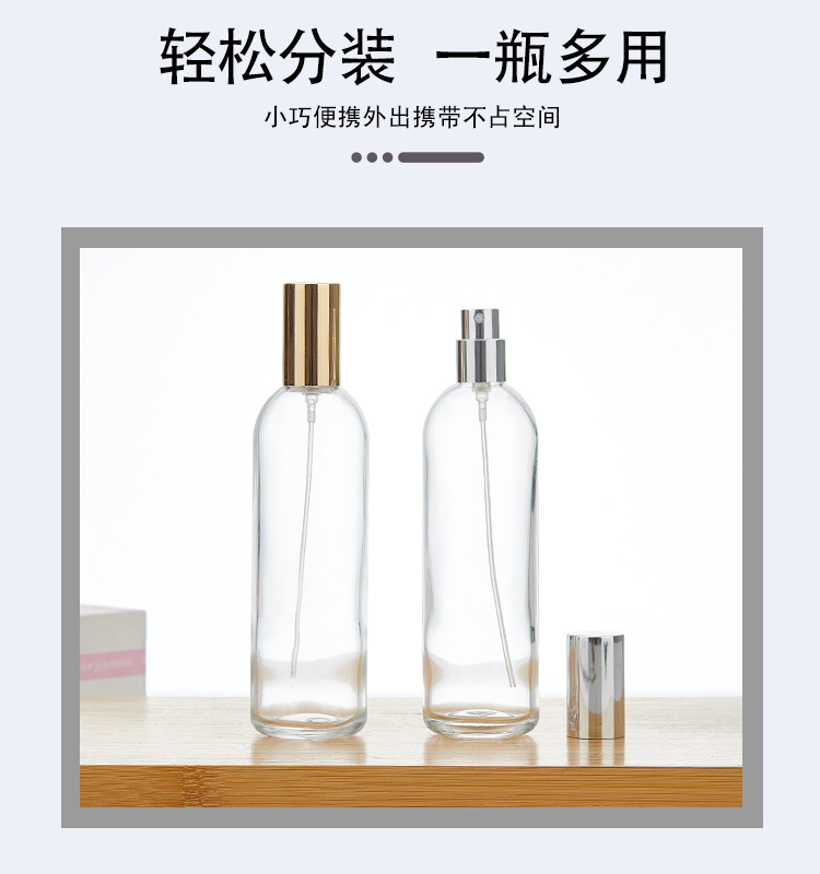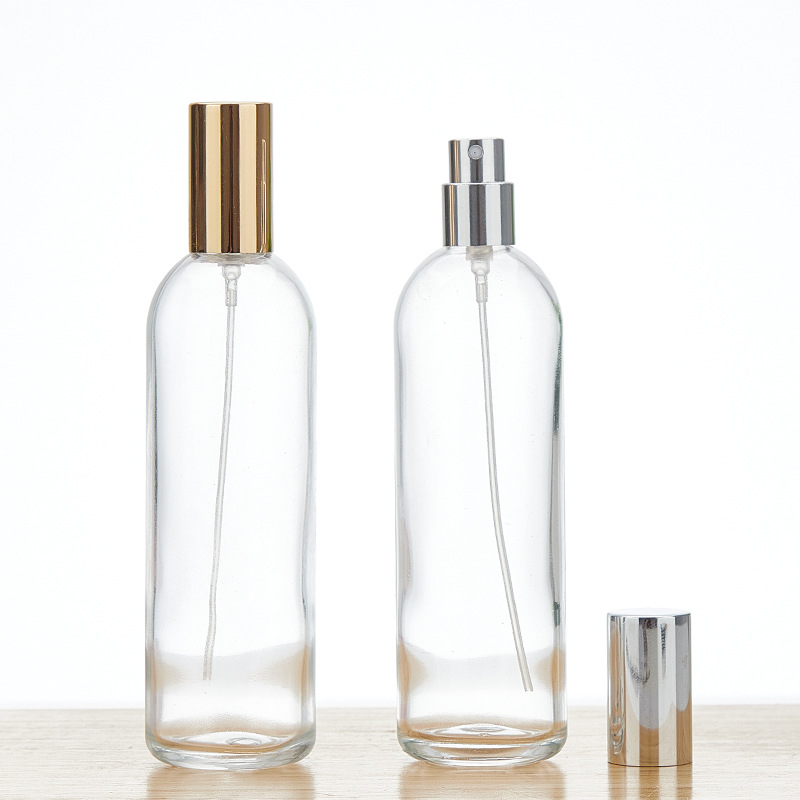 100ml transparent bottle plastic card nozzle (golden) + golden cover; transparent; glass
