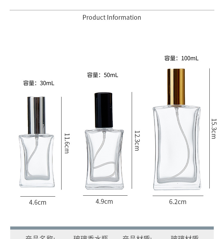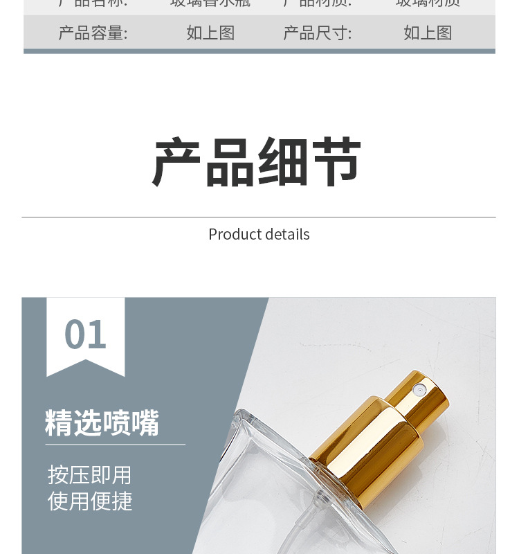 100ml bottle + golden spray; transparent; glass