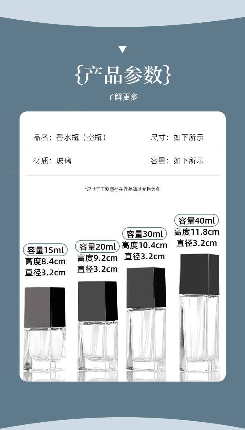 | 30;15ml naked bottle + bright black square cover + pump head; glass | CN¥ 1.29 | 999849 set available |