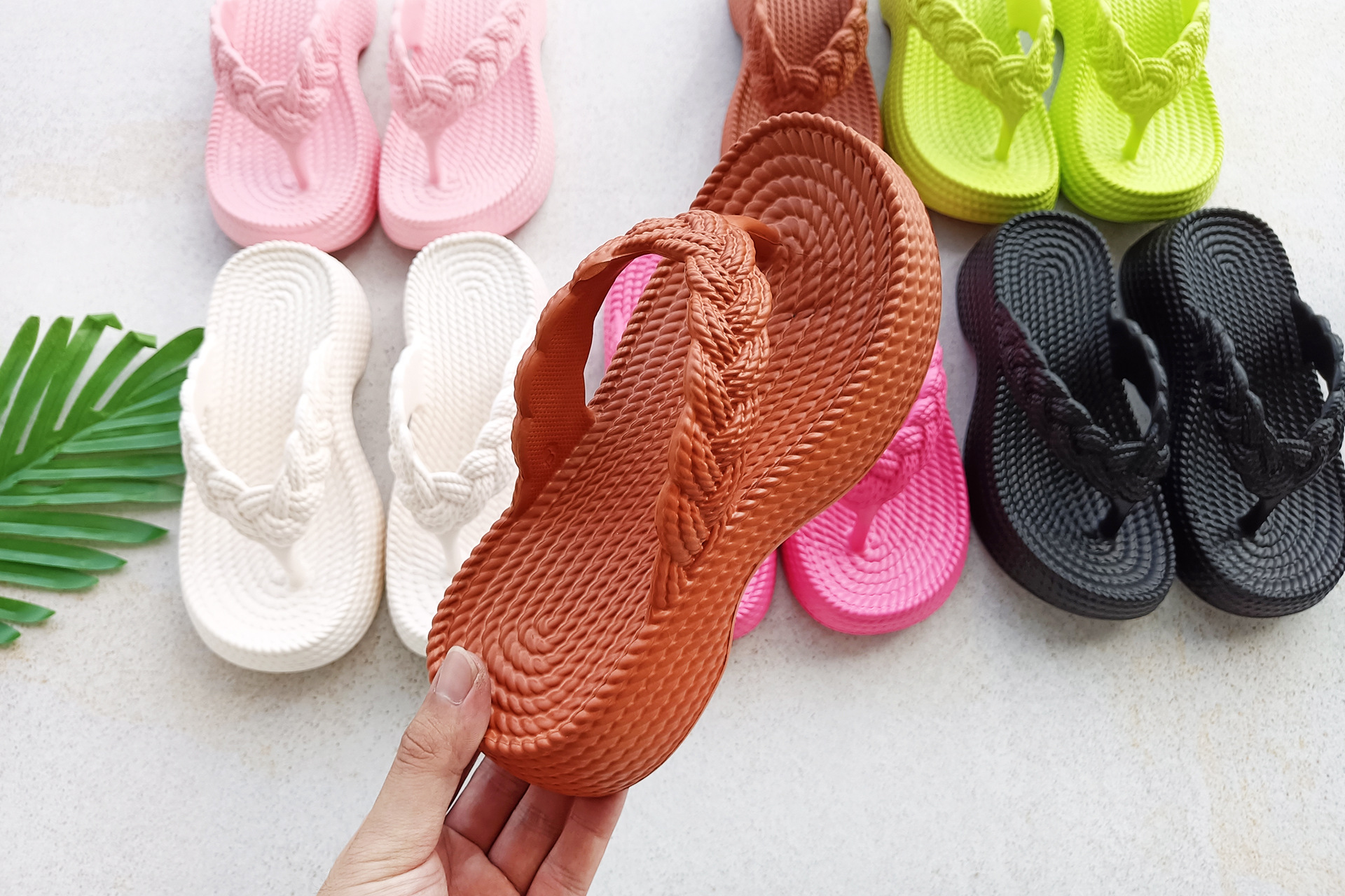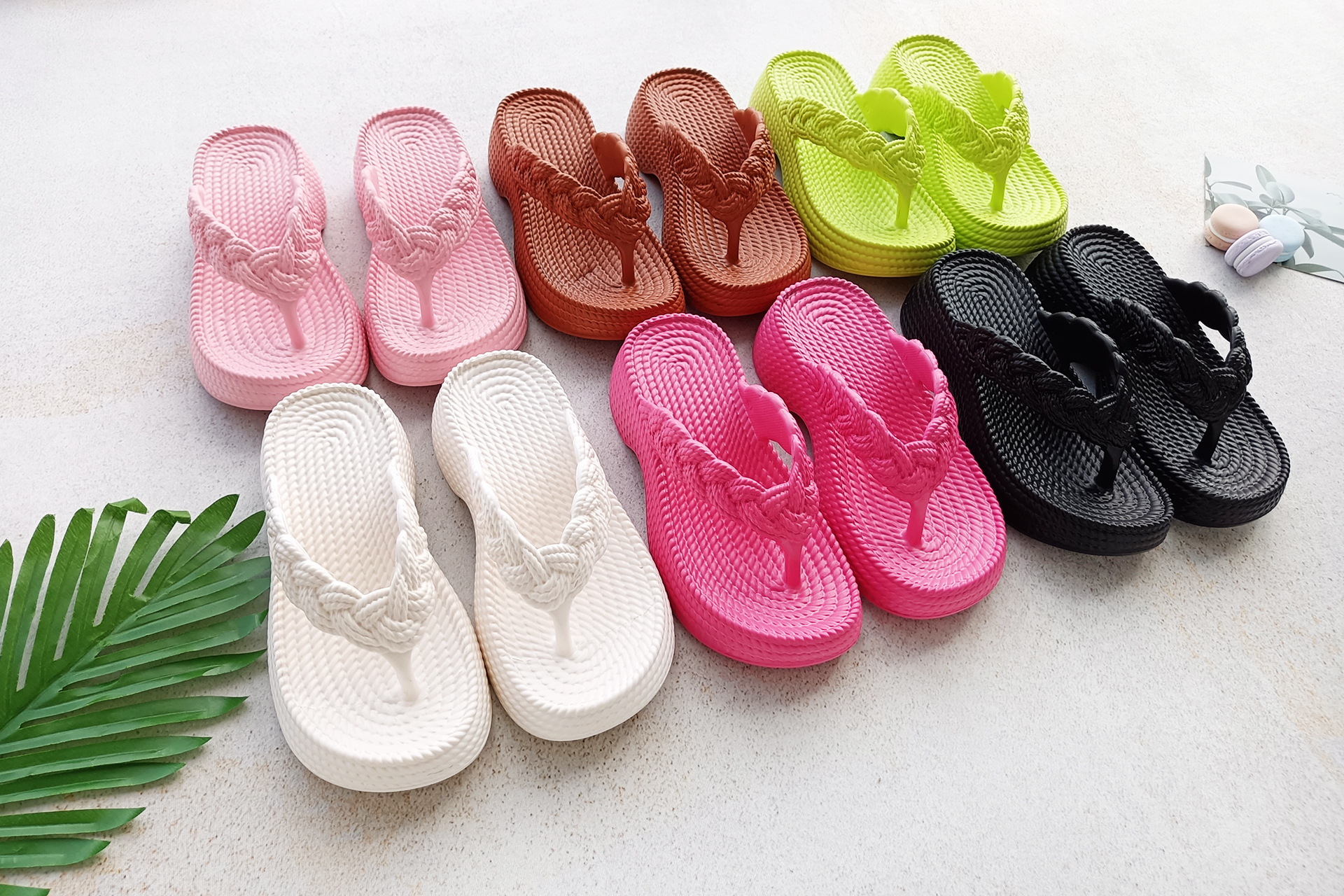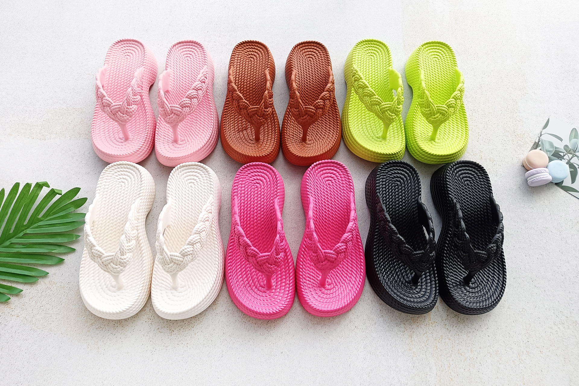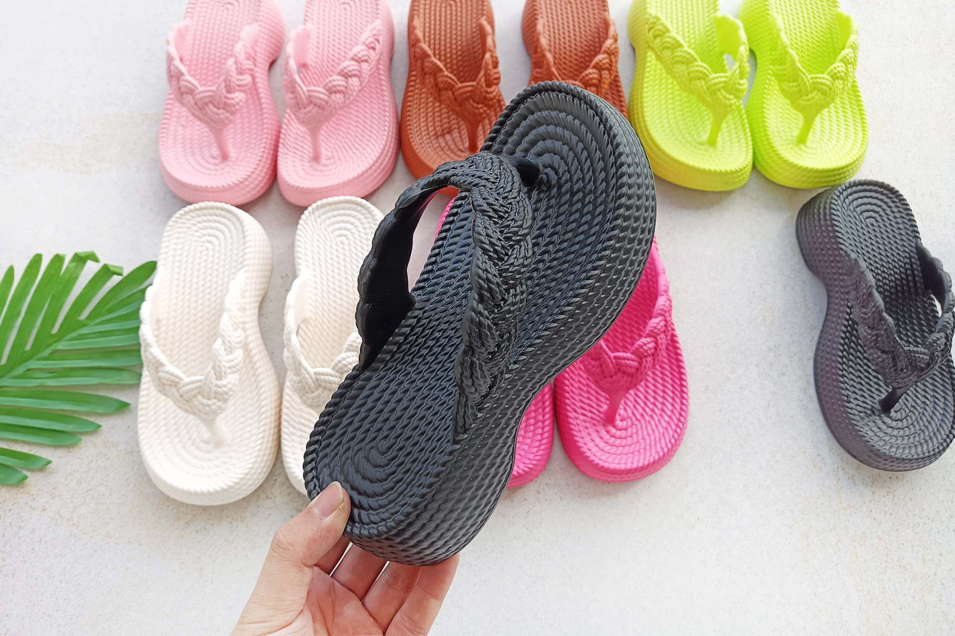 eva wedge flip-flops women's new hemp rope flip flops outer wear imitation woven thick bottom casual beach style flip flops