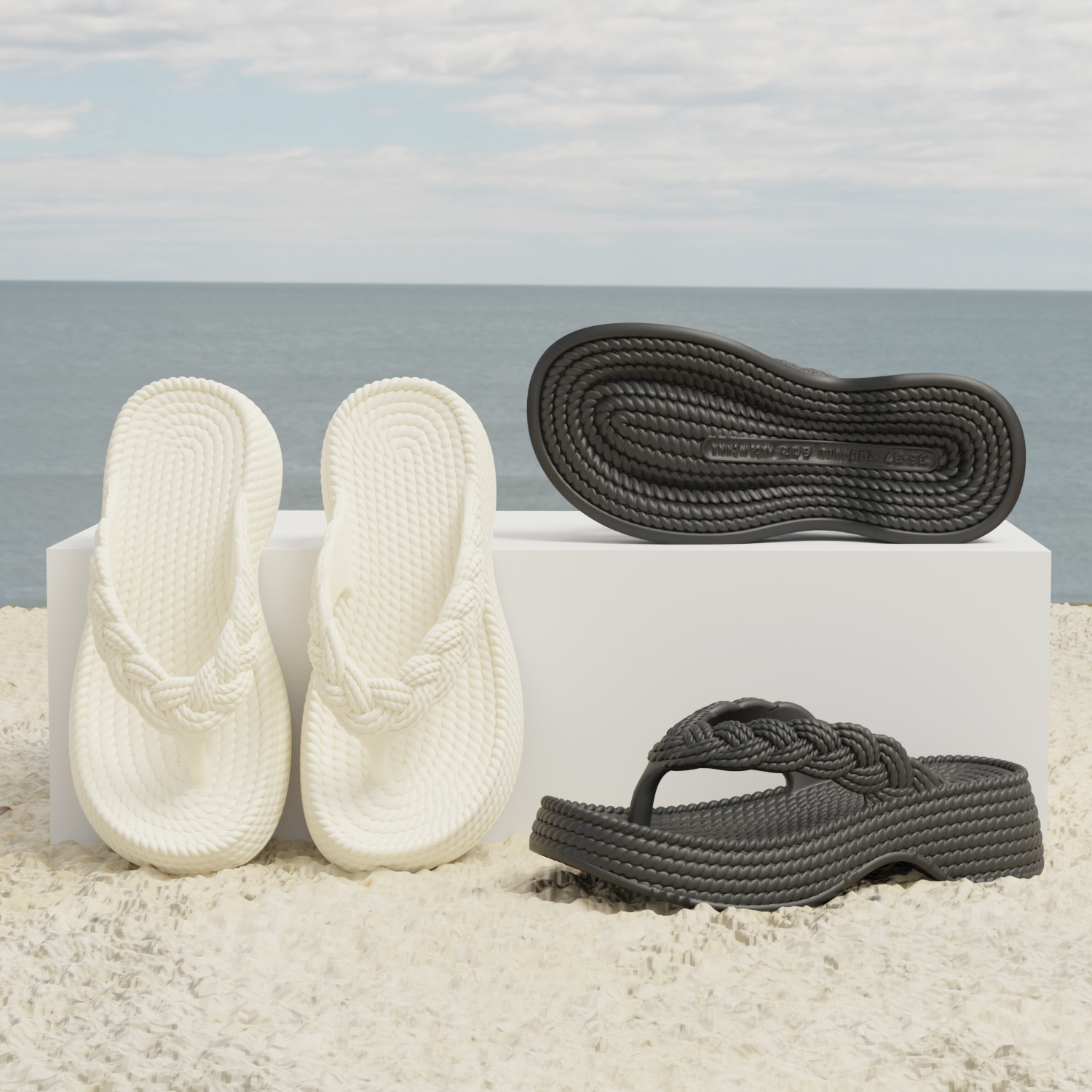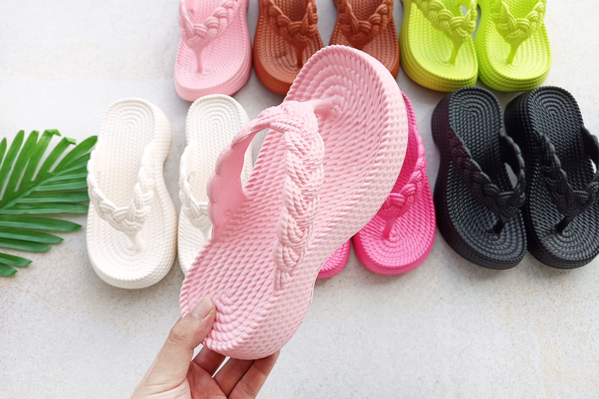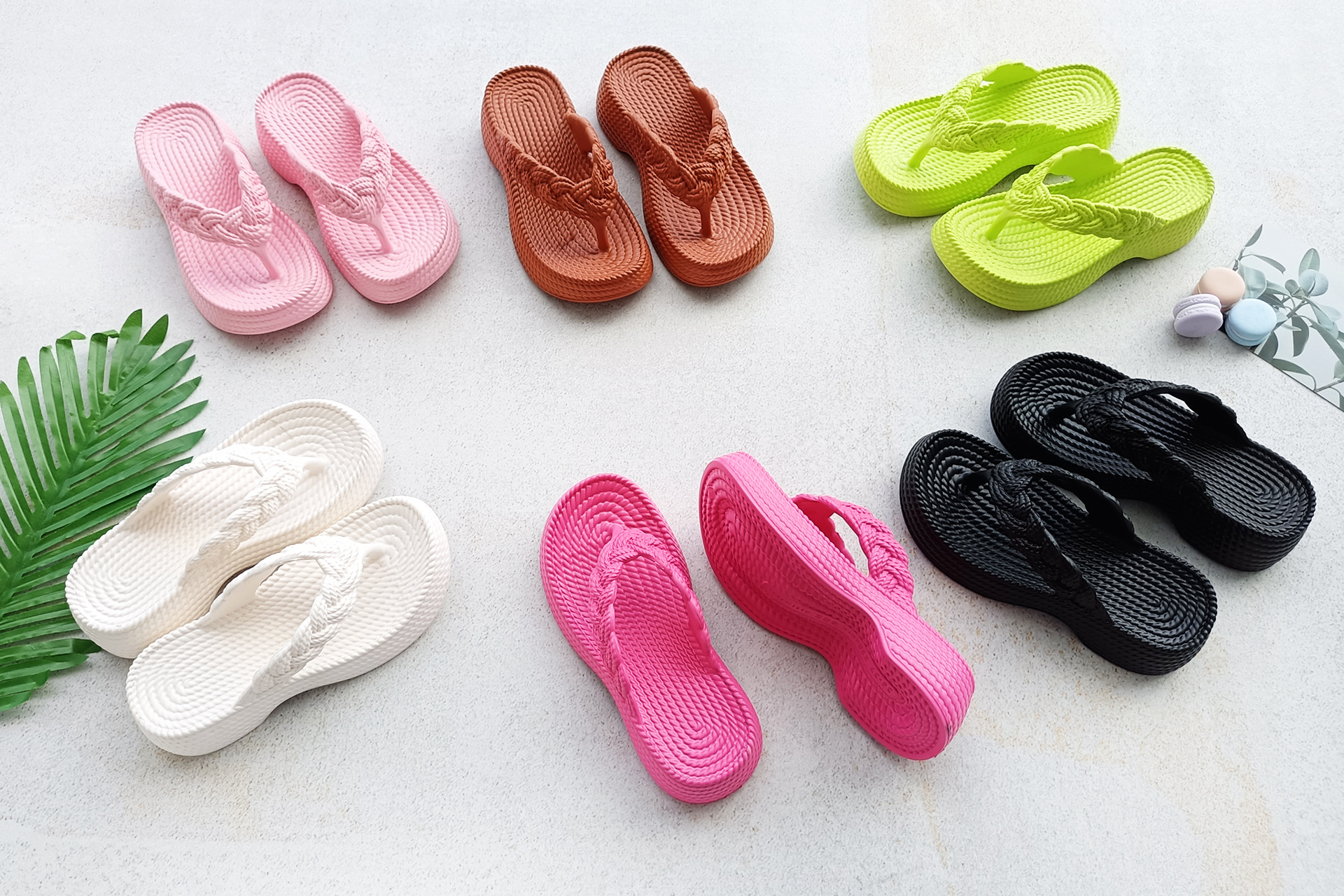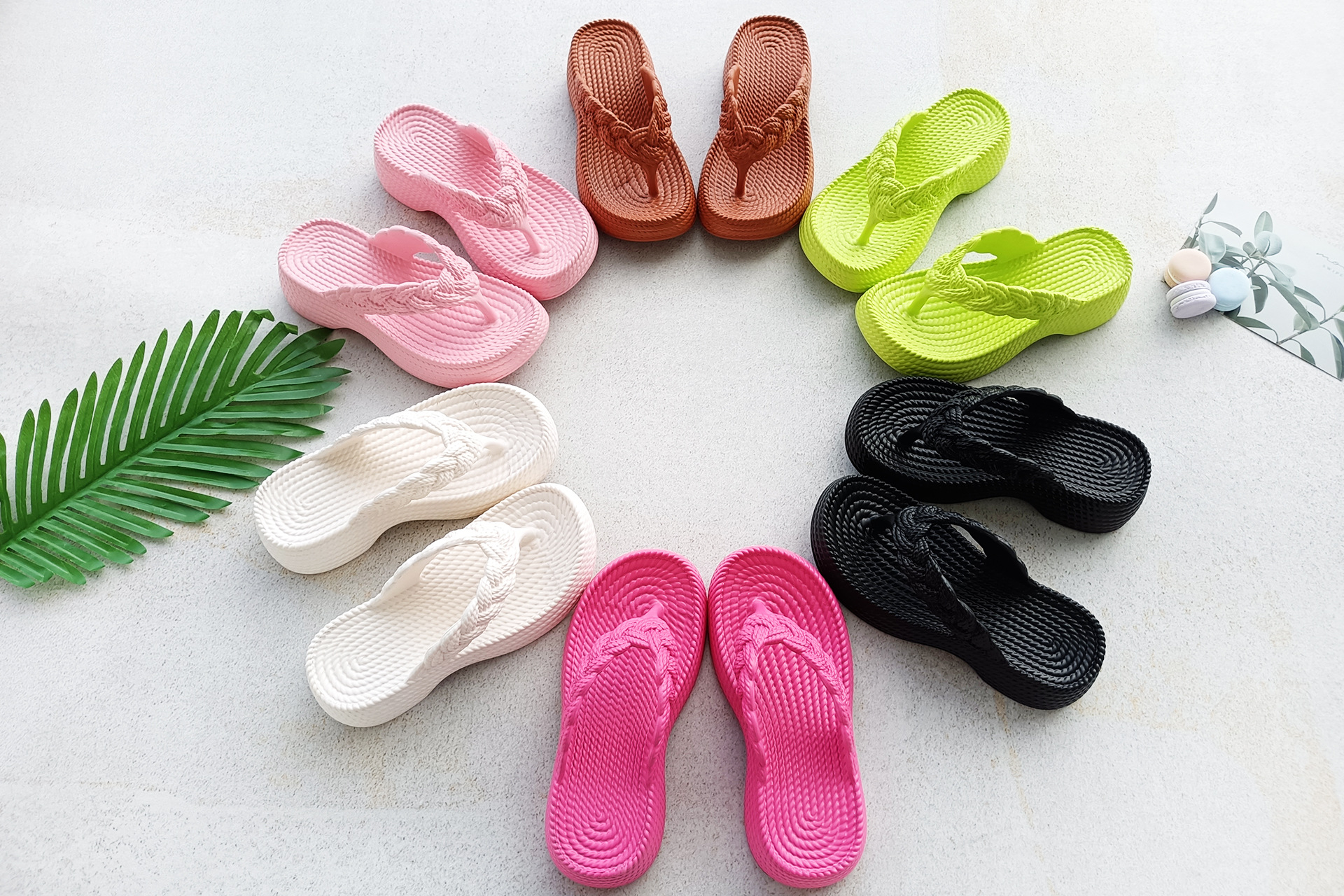eva wedge flip-flops women's new hemp rope flip flops outer wear imitation woven thick bottom casual beach style flip flops