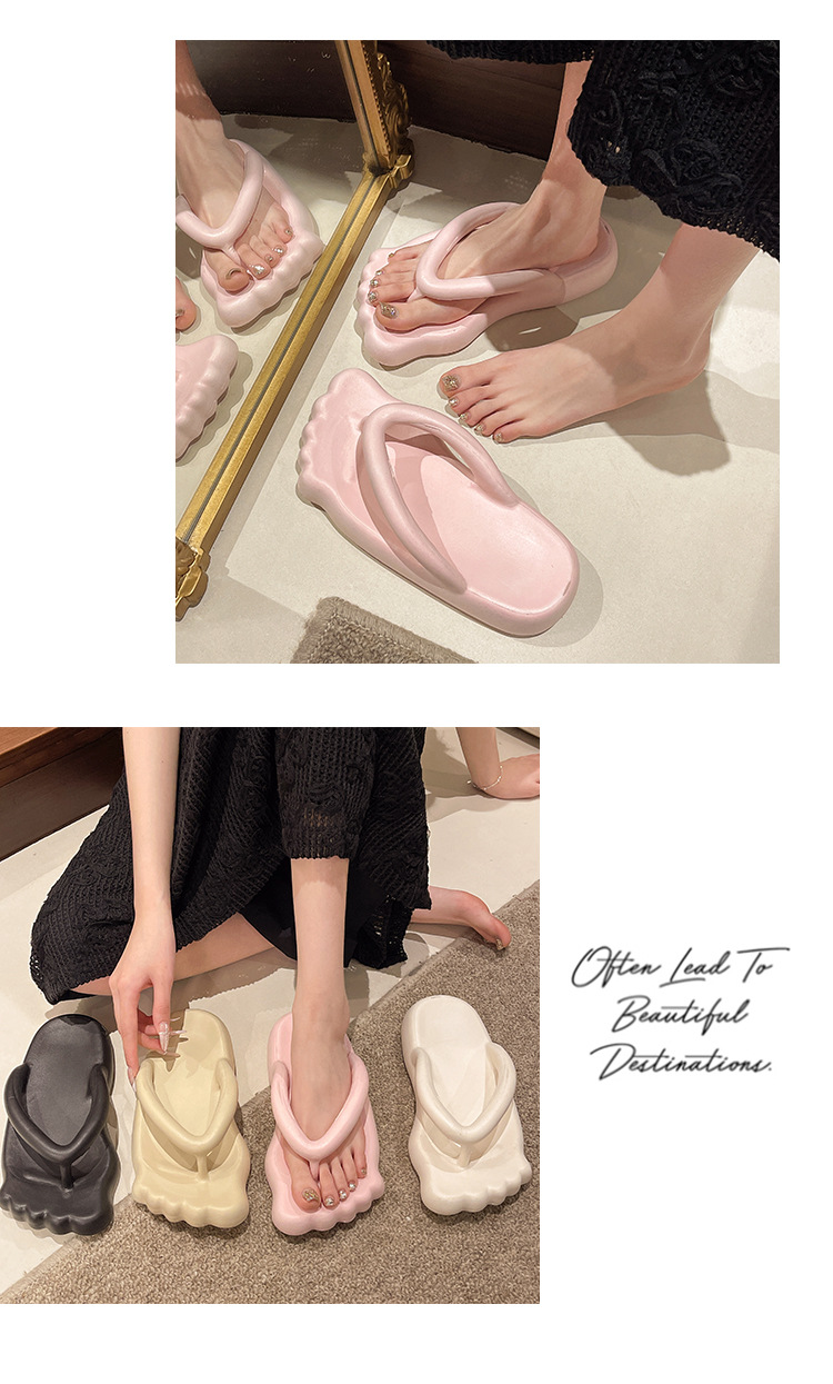 summer eva thick-soled non-slip women's slippers outdoor wear shit feeling funny nail head beach casual herringbone slippers