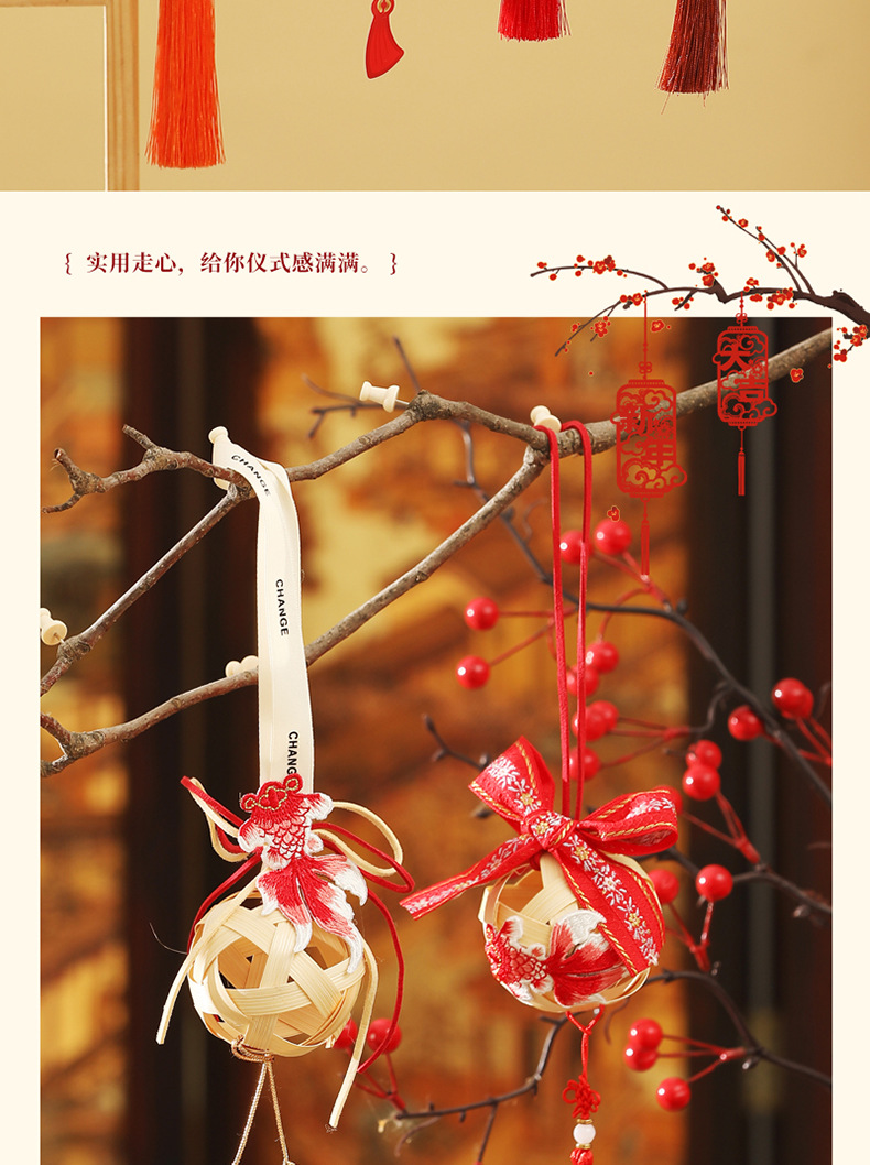 bamboo woven chinese rose tassel style