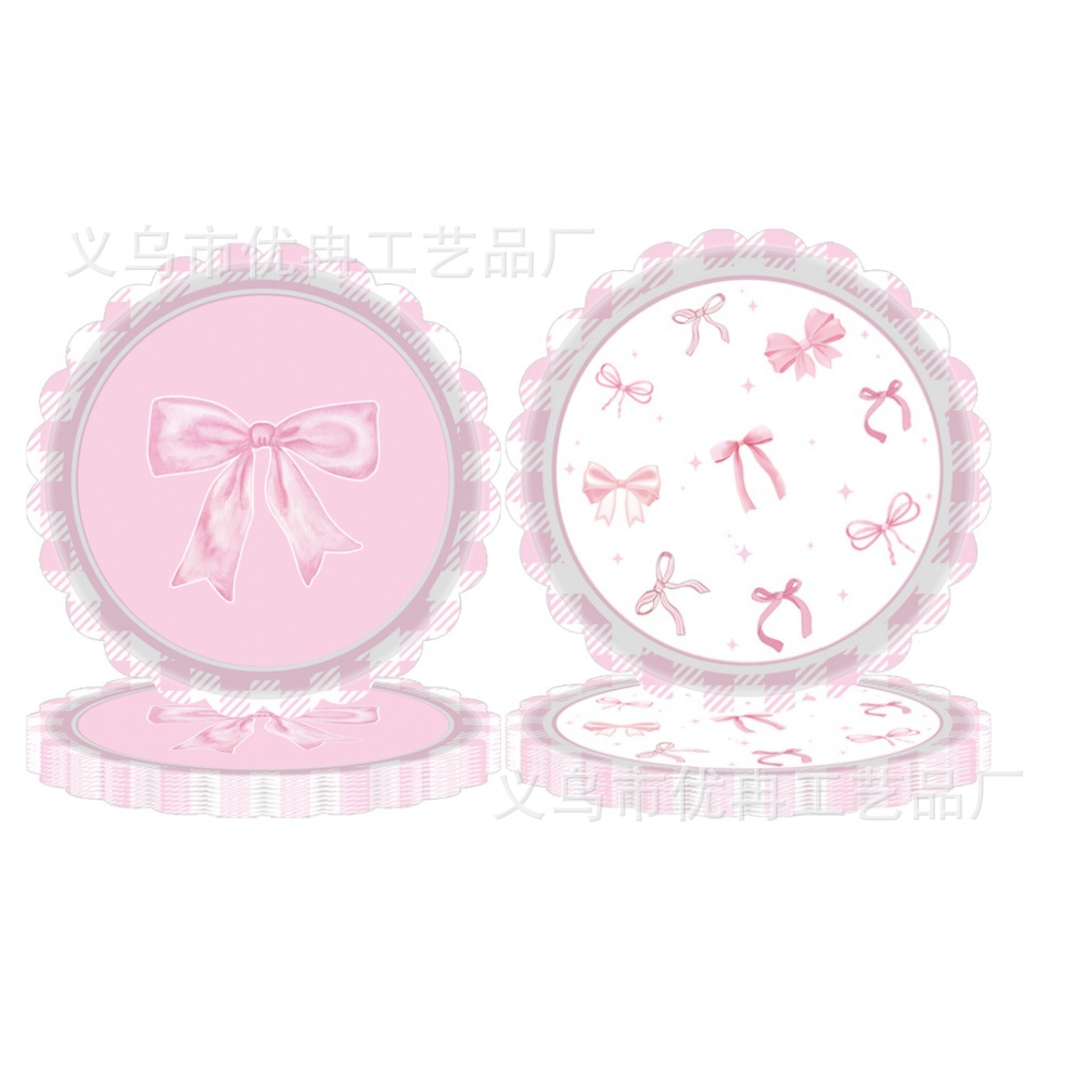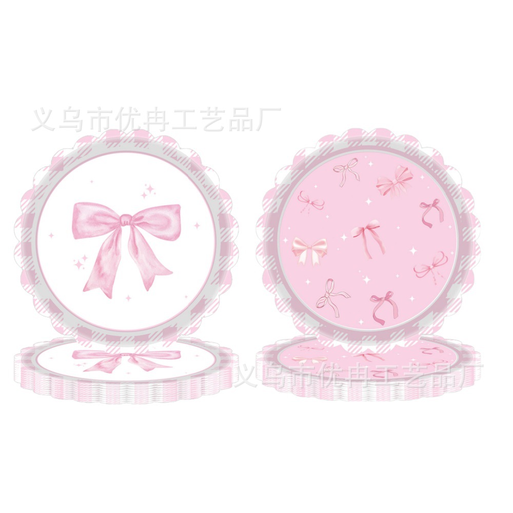 pink lace bow 7-inch plate * 24