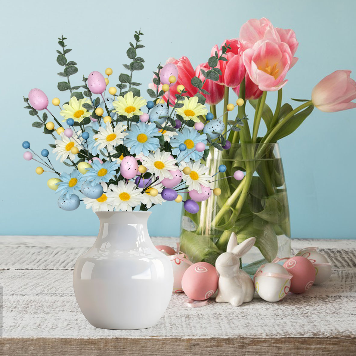 colorful egg twig cutting