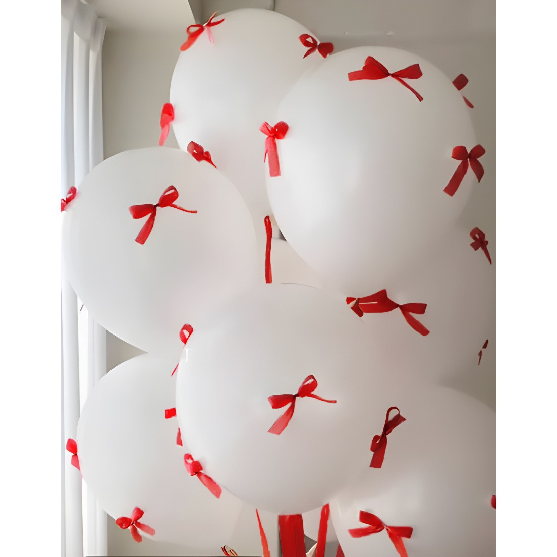 12-inch white balls 5+30 red bows = ribbon