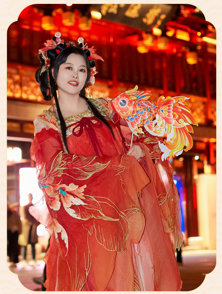 wearing flower headdress rich fish style + exquisite fish lamp goldfish style