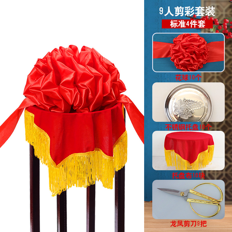 10-person set for ribbon cutting = 11 floral ball +11 trays +11 tray cloth +10 scissors