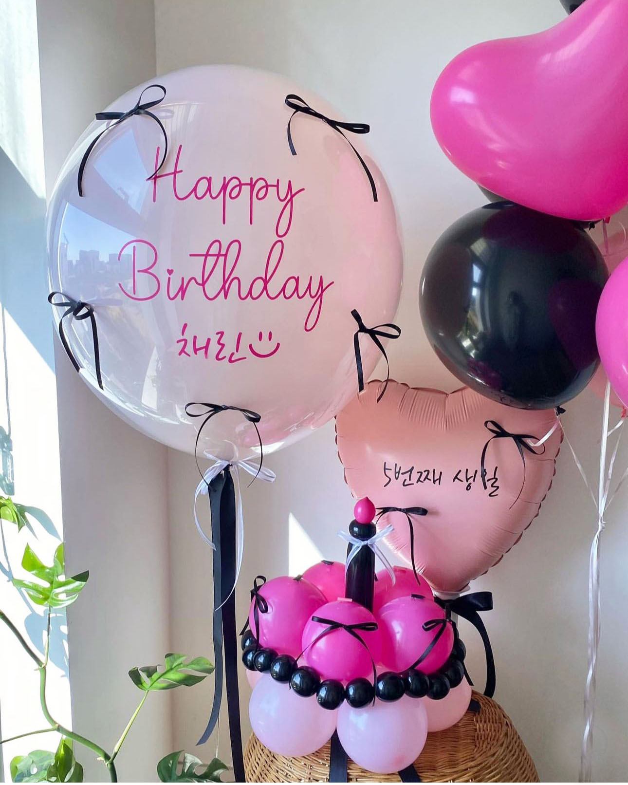 8 pink +8 white bows +8 pink butterfly balls + ribbon