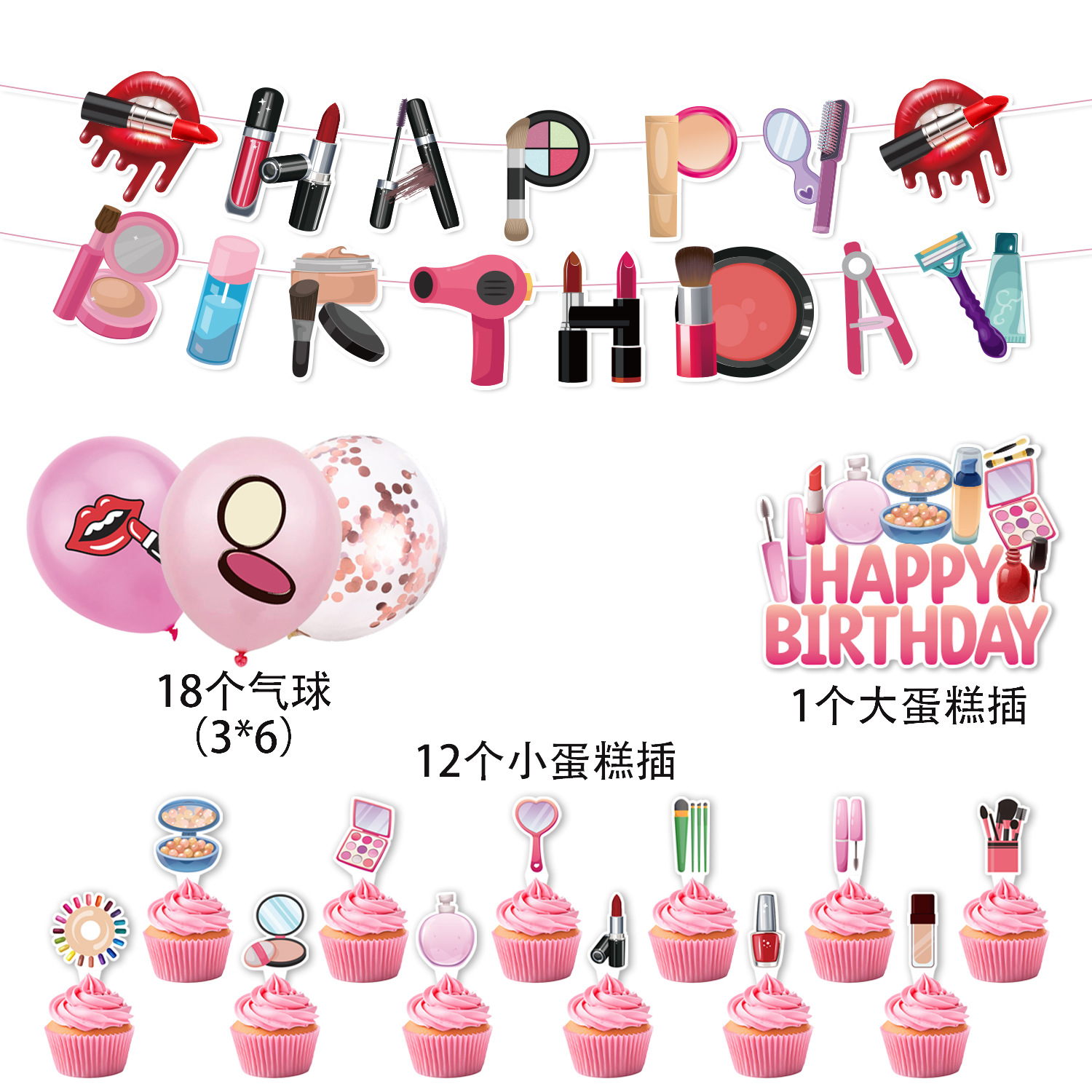 paper flag 1 set + small decorative flag 12 + large decorative flag 1+18 balloons
