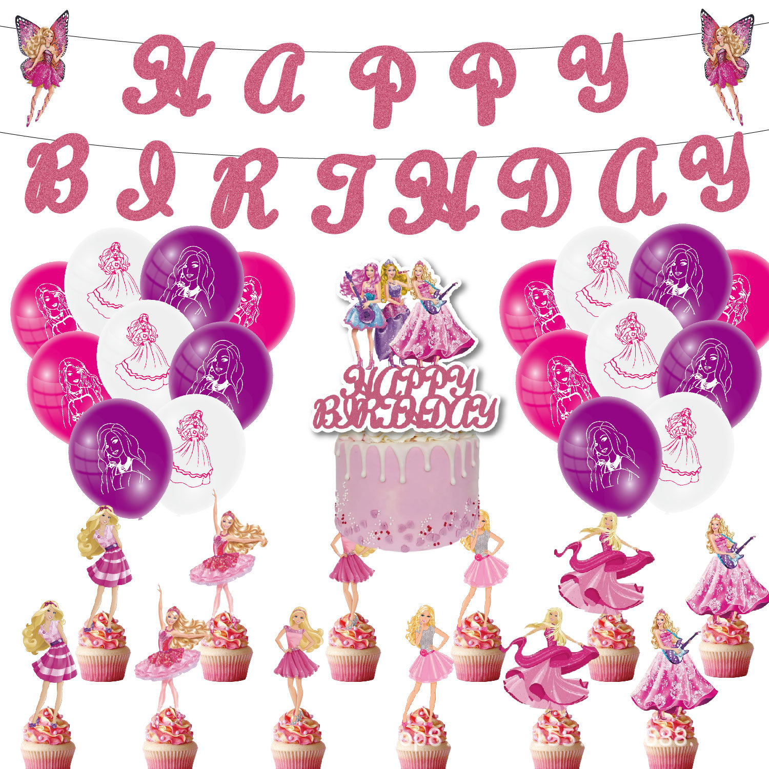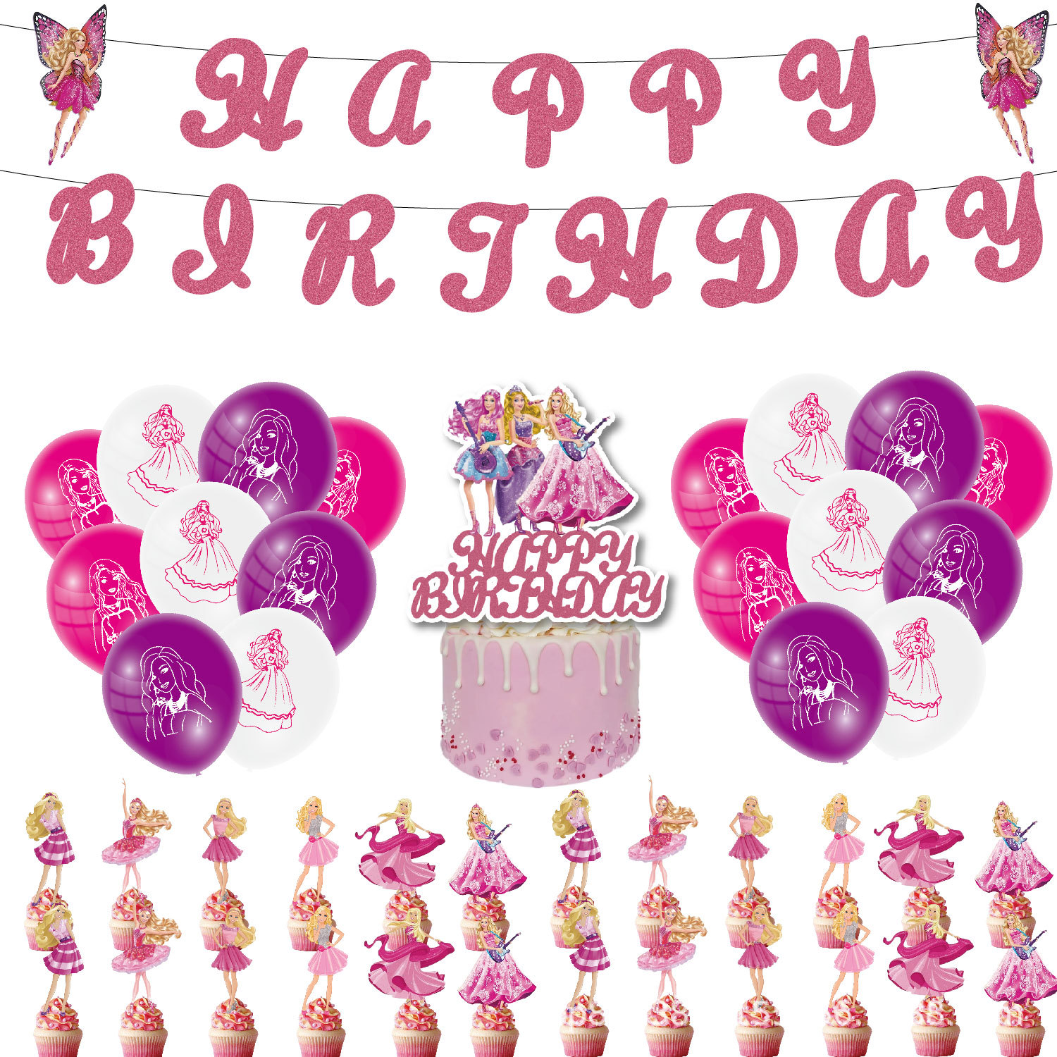 paper flag 1 set + decorative flag 24 + large decorative flag 1+18 balloons