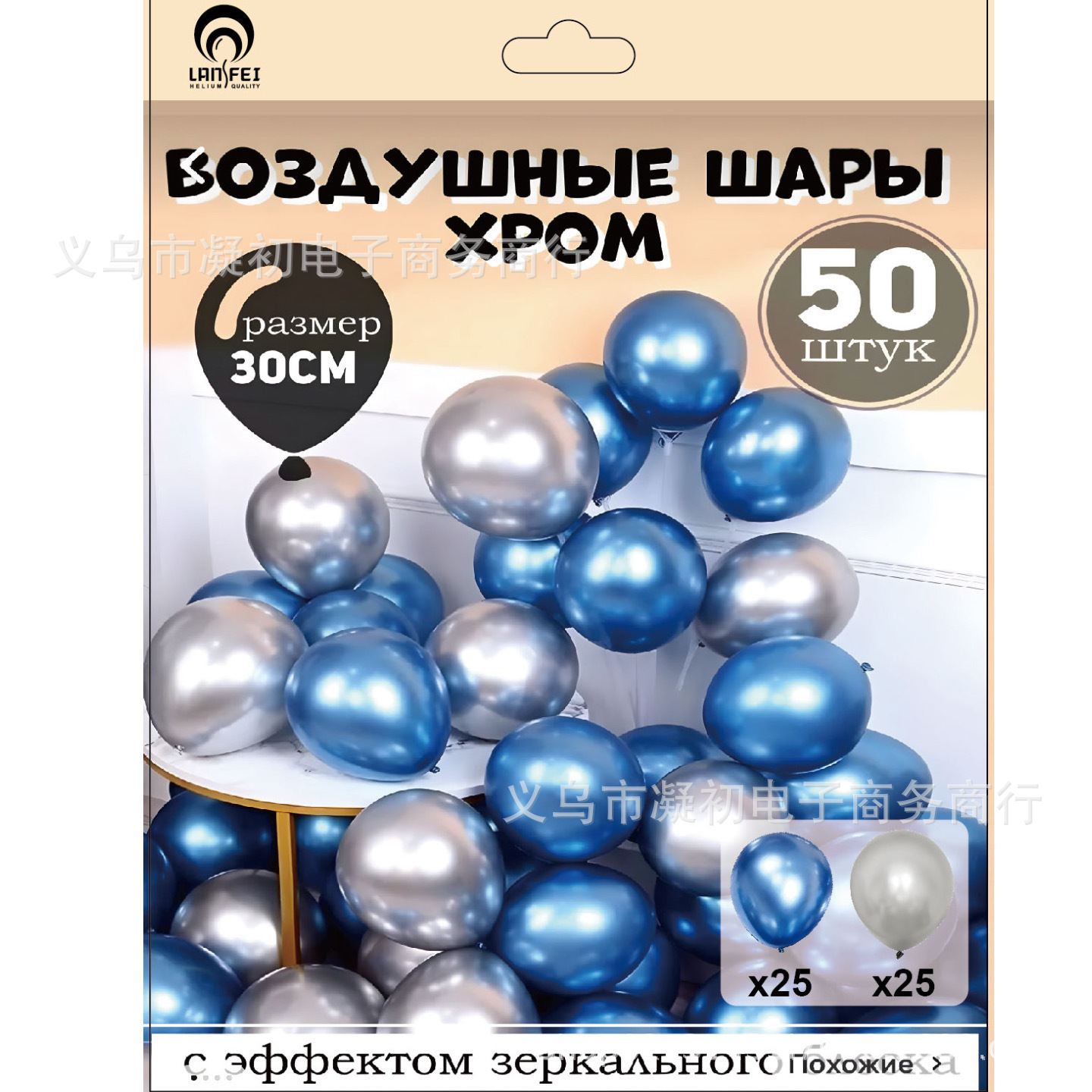 50pcs card mounted metal balloon -- silver blue