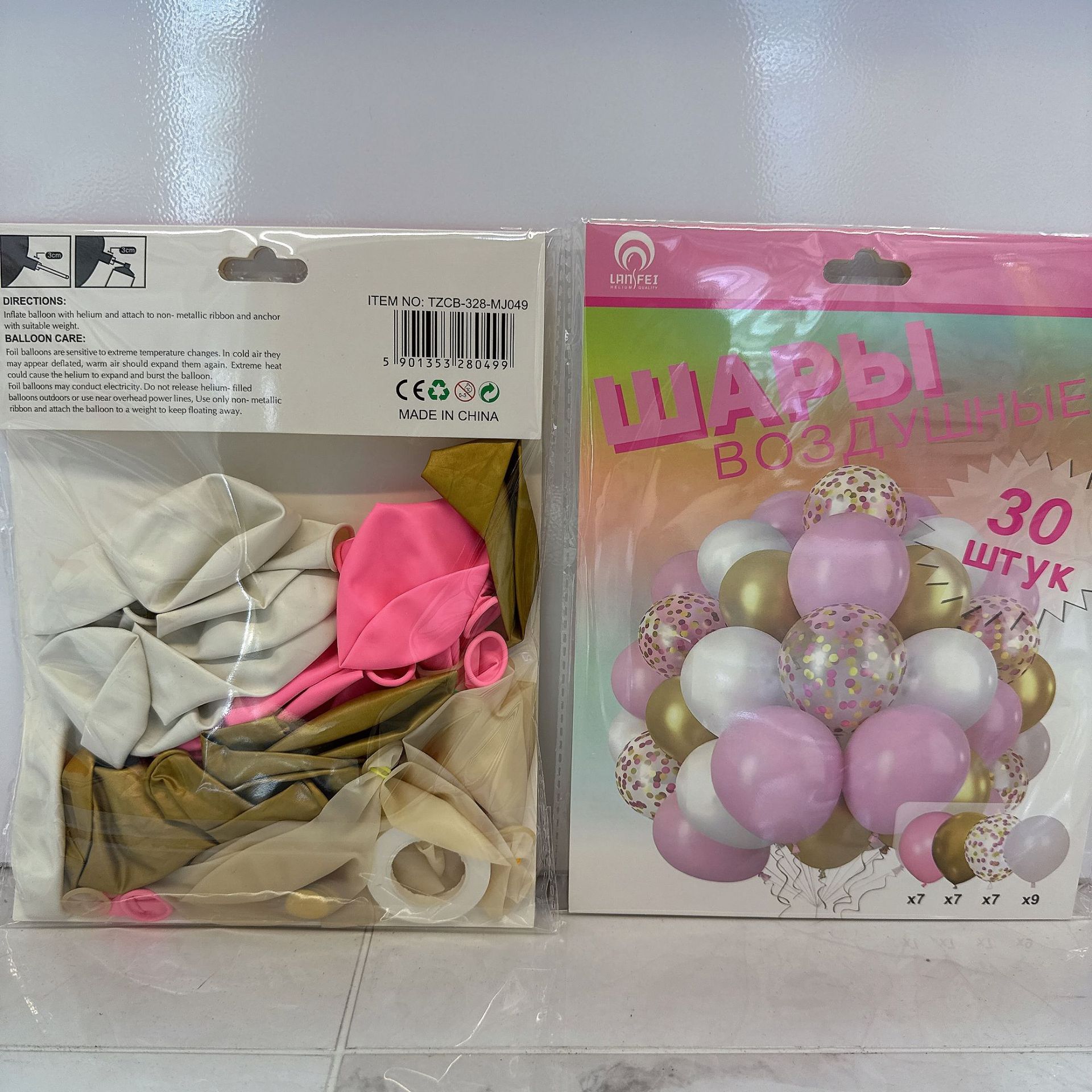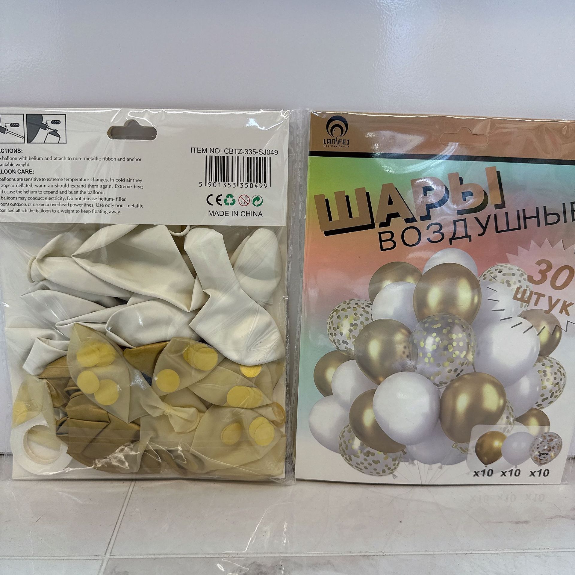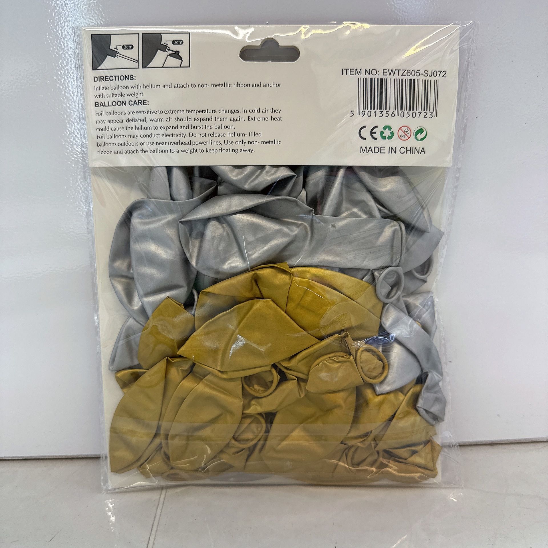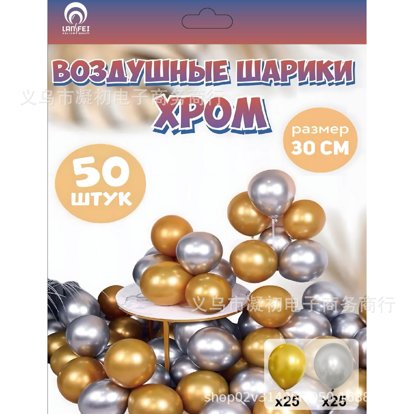50pcs card mounted metal balloon -- gold and silver color