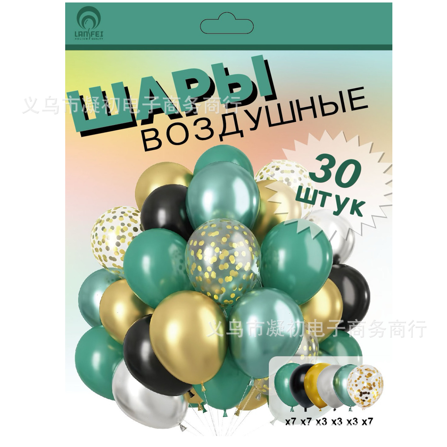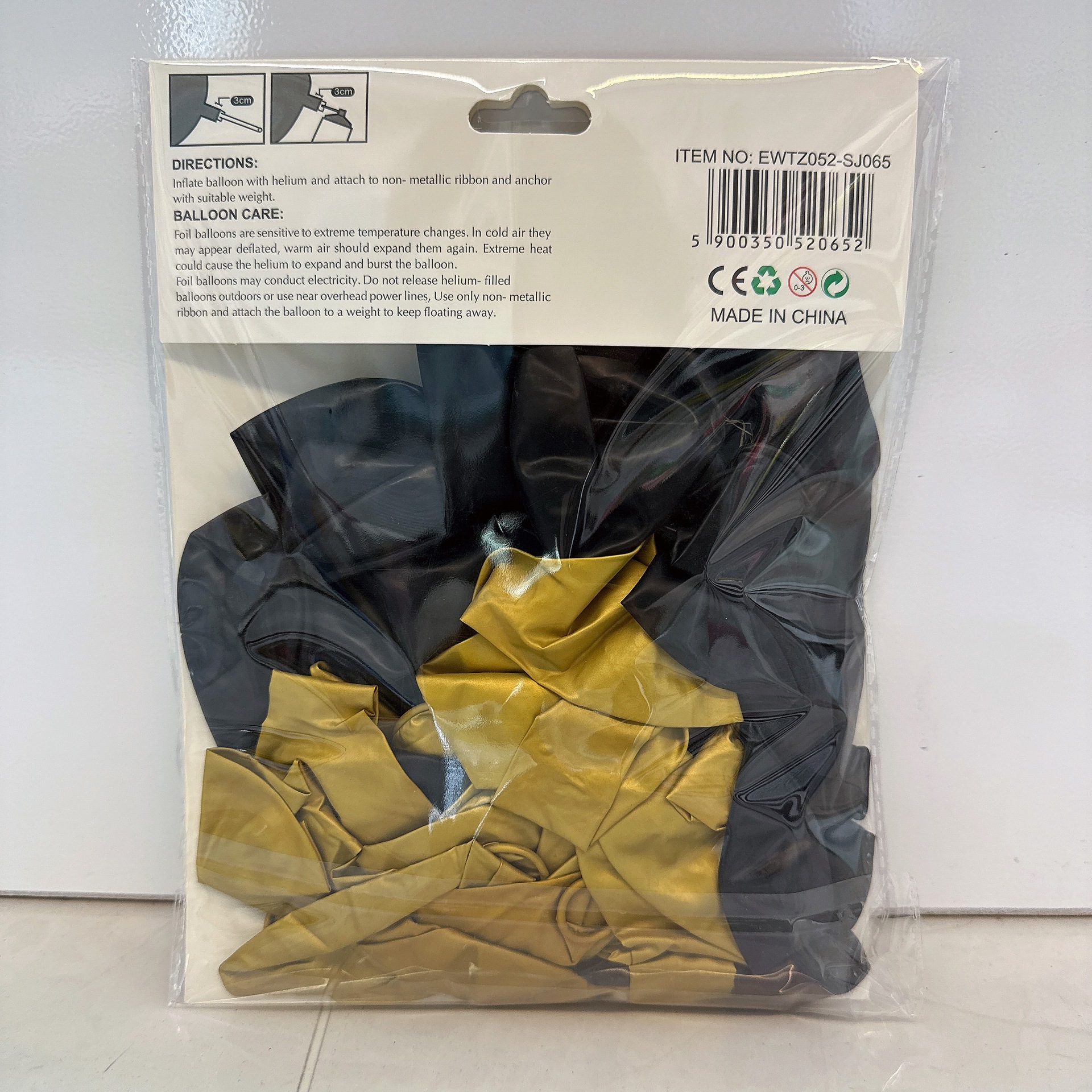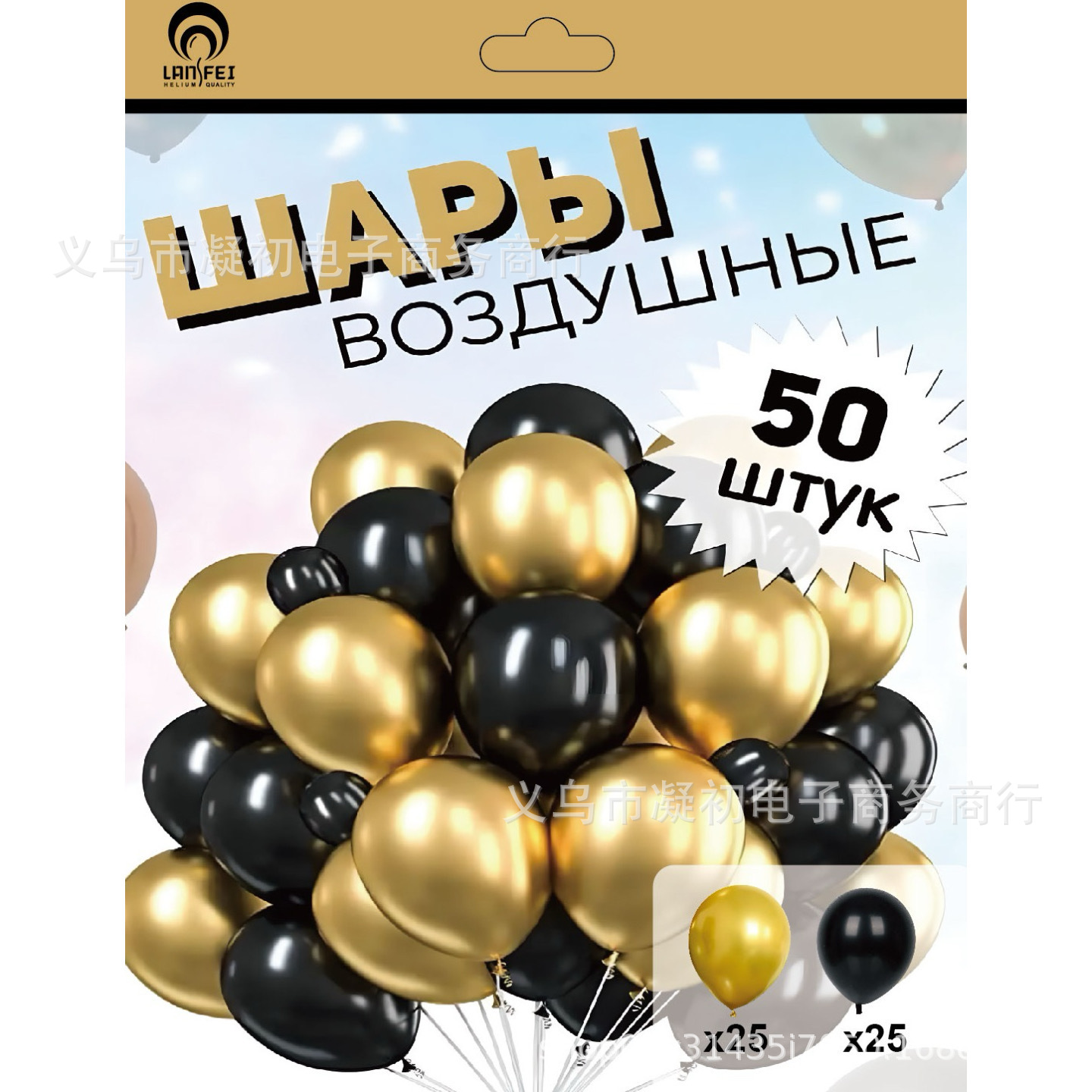 50pcs card mounted metal balloon black-gold