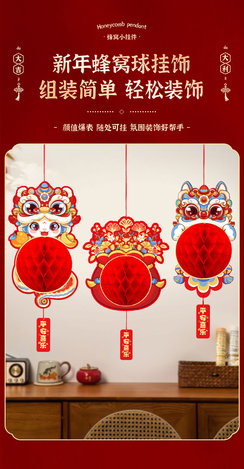 [lion dance sending blessing] honeycomb ball pendant