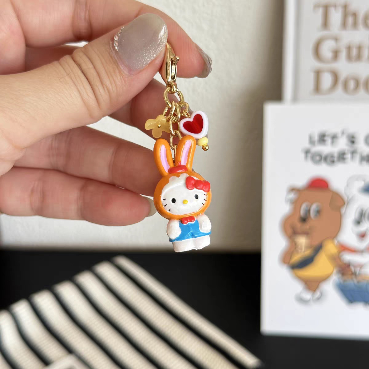 orange rabbit hat kitten pendant