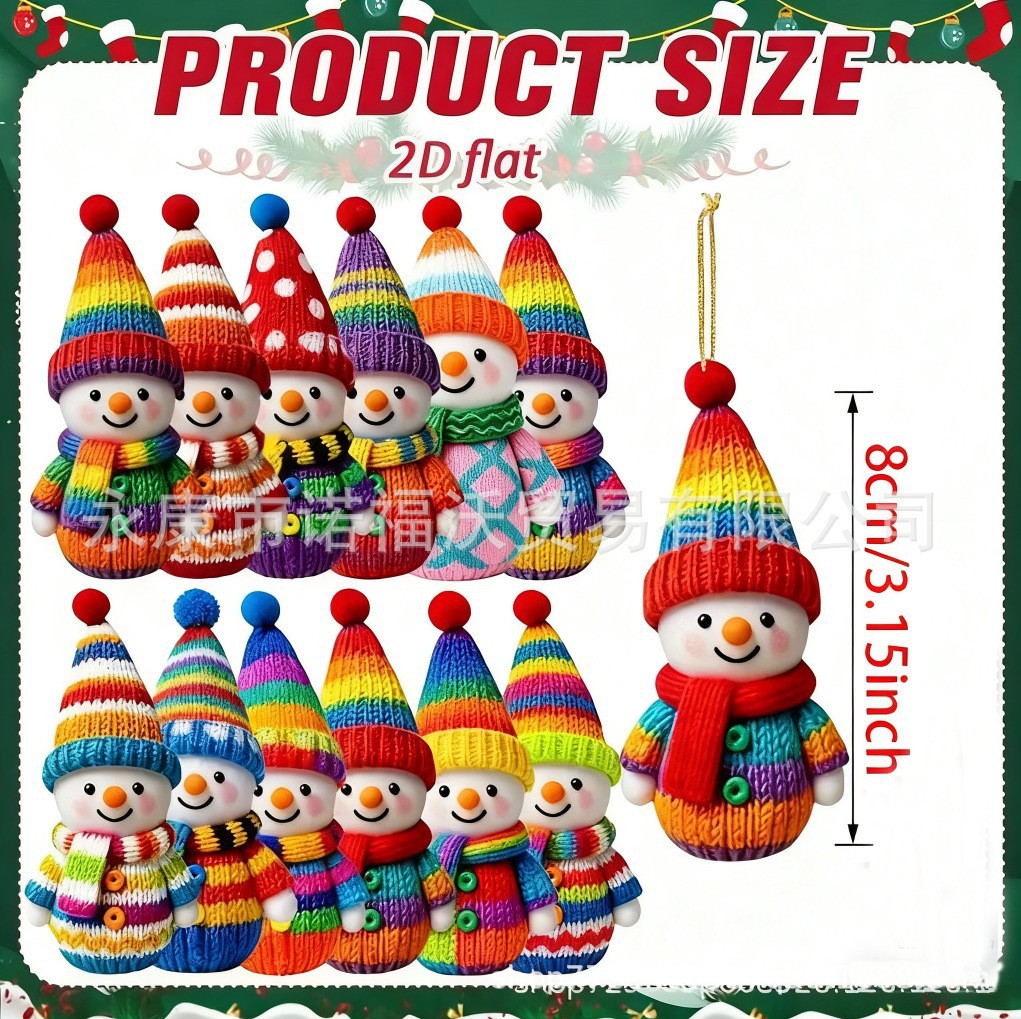 12-piece colorful snowman pendant set