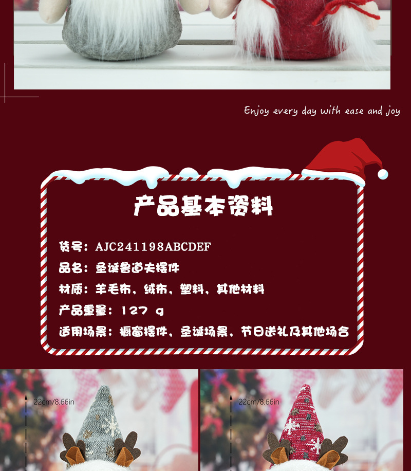 gray white wool cap rudolf ornaments