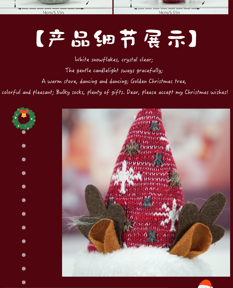 red and white pattern hat rudolf ornaments