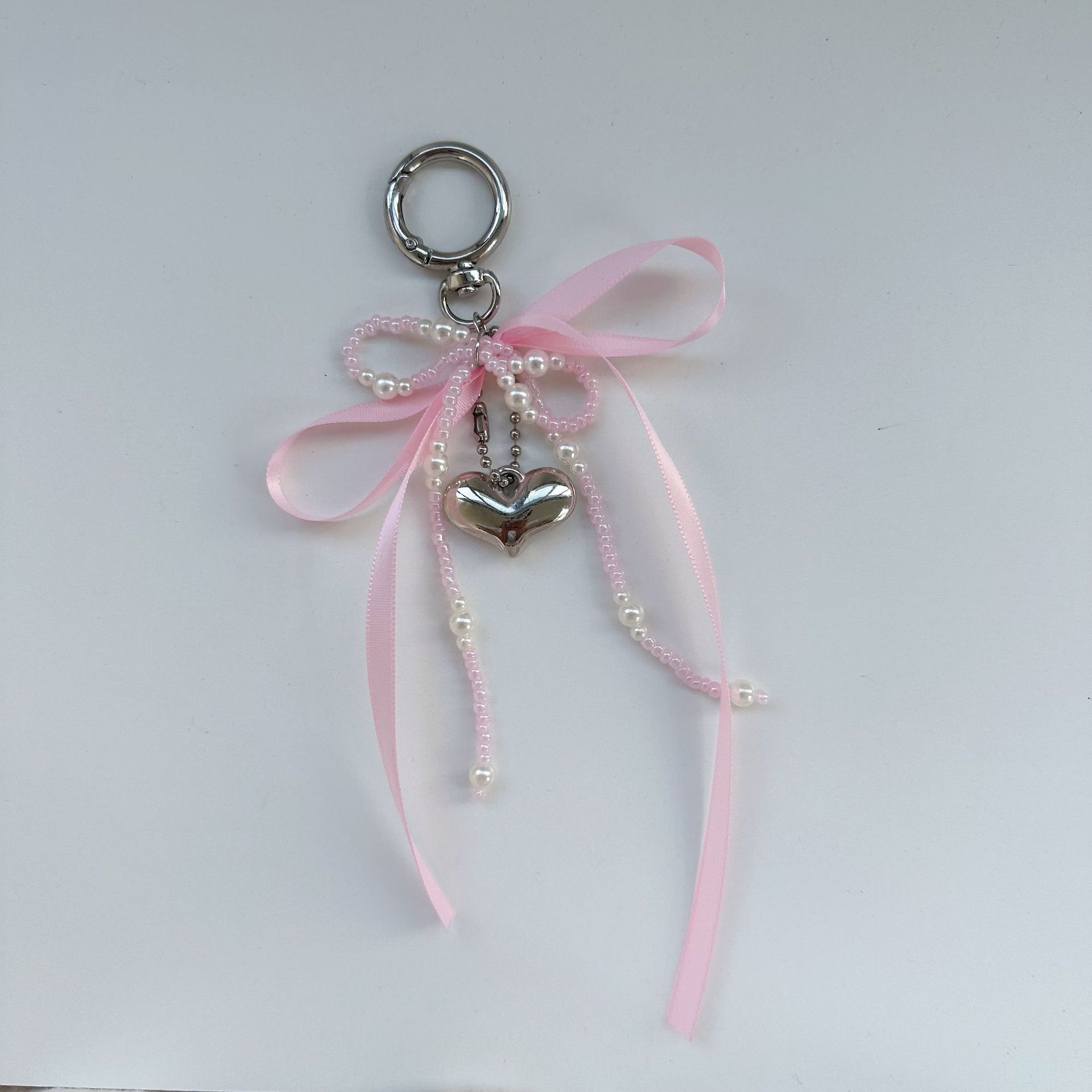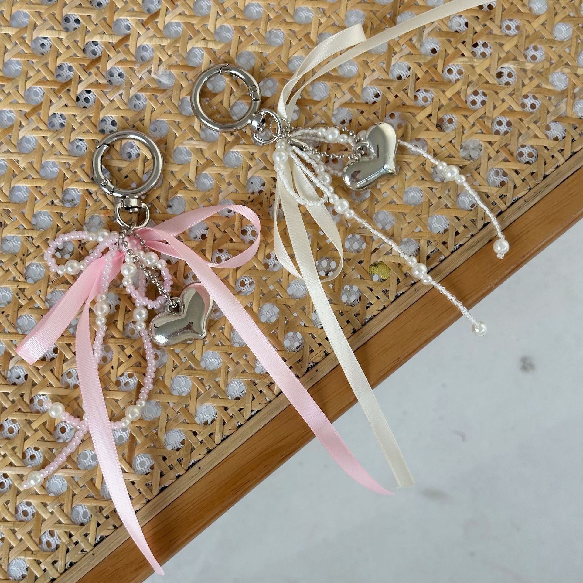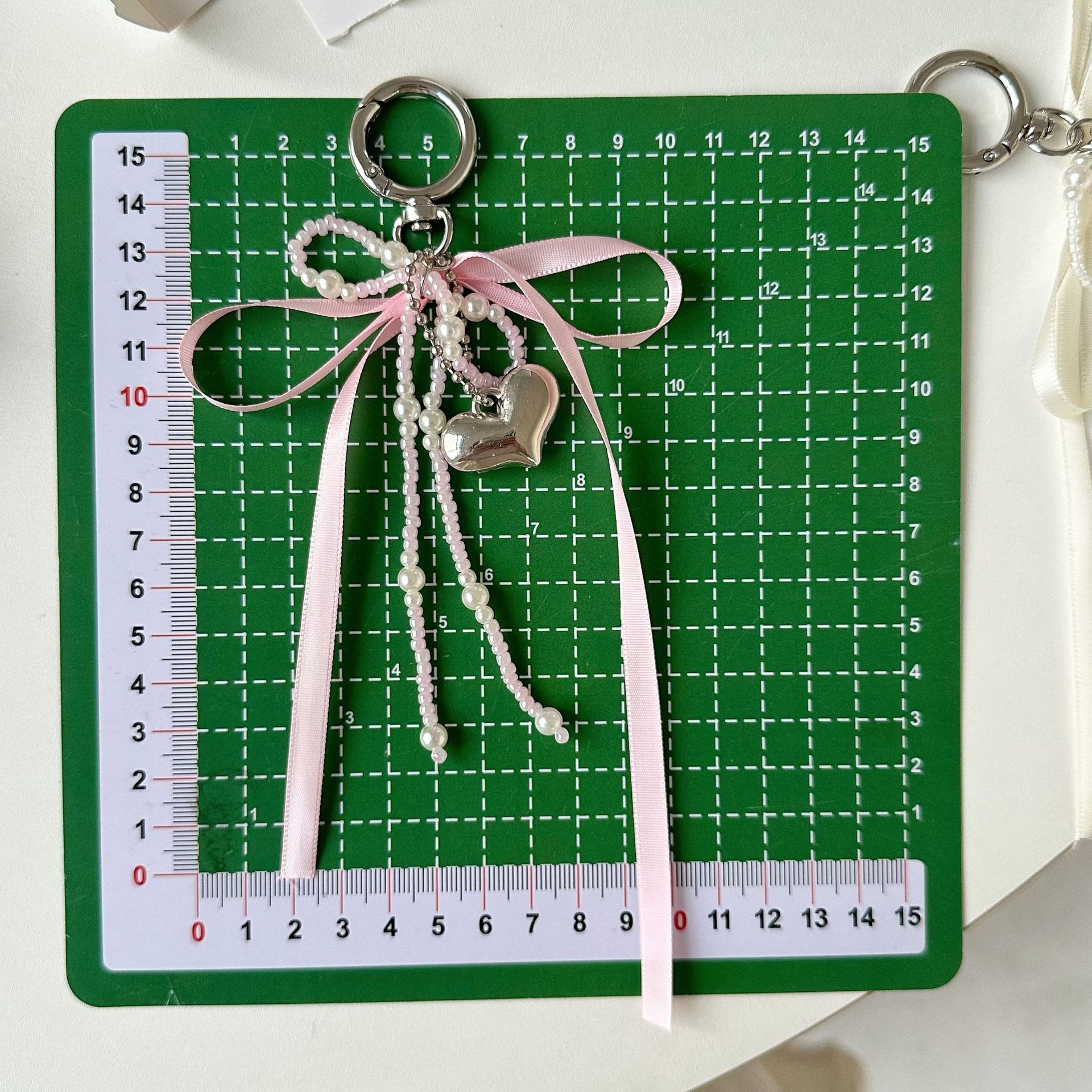 white beaded ribbon bow