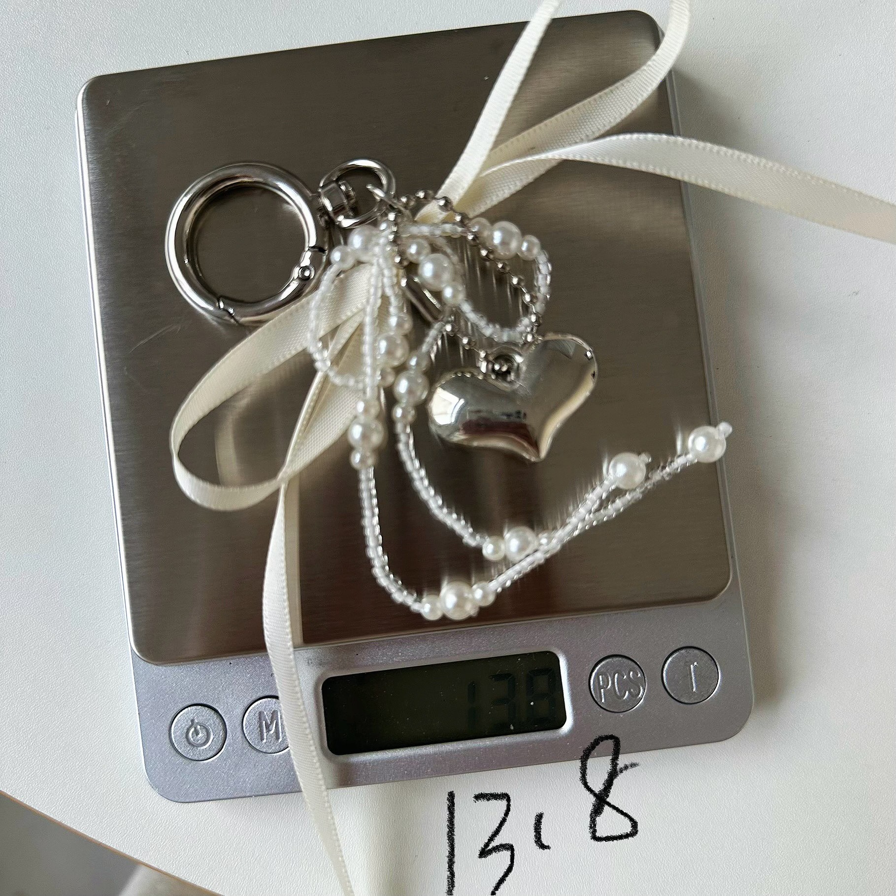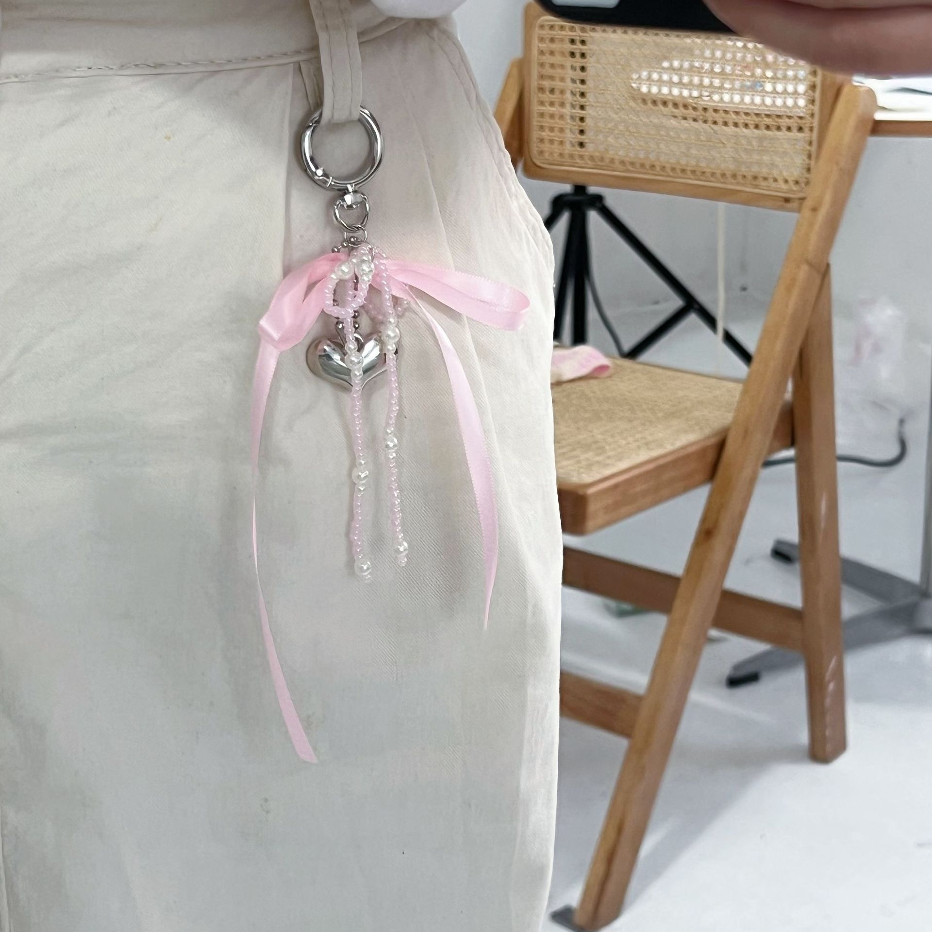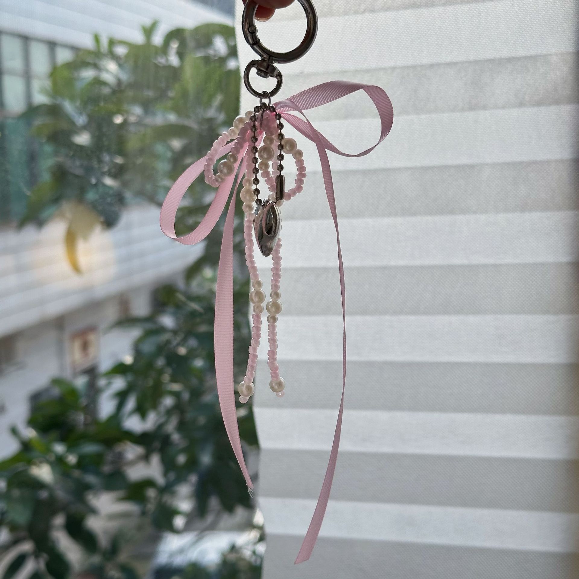 white beaded ribbon bow
