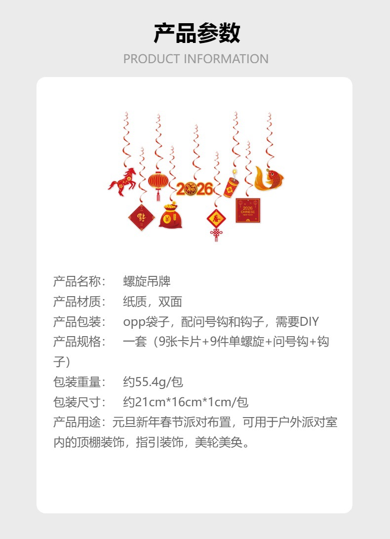 one set (9 cards +9 single spiral + hook) l-0062