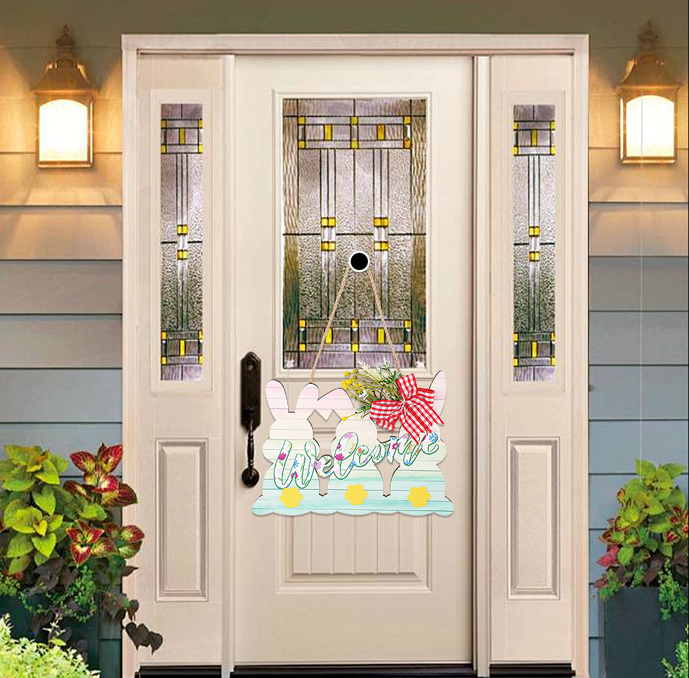 three rabbits welcome wooden board