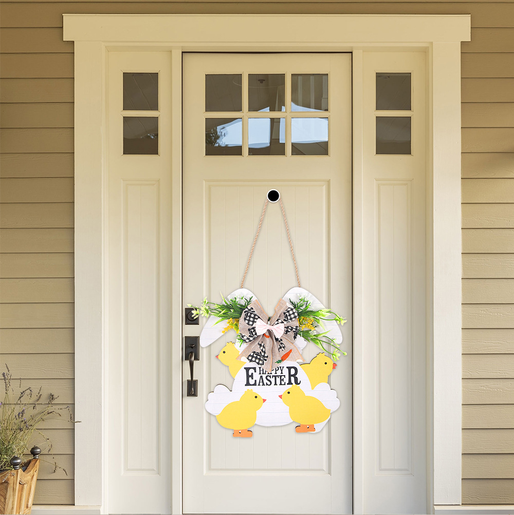 yellow chicken rabbit wooden board
