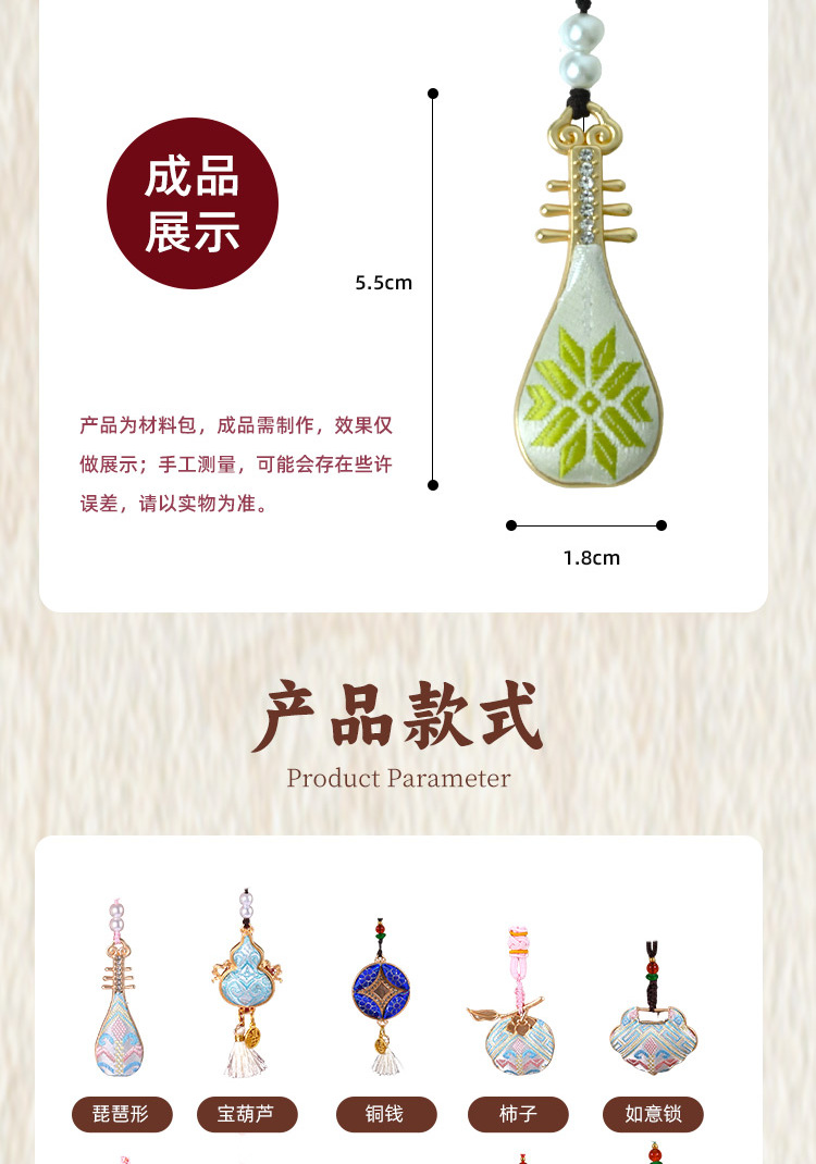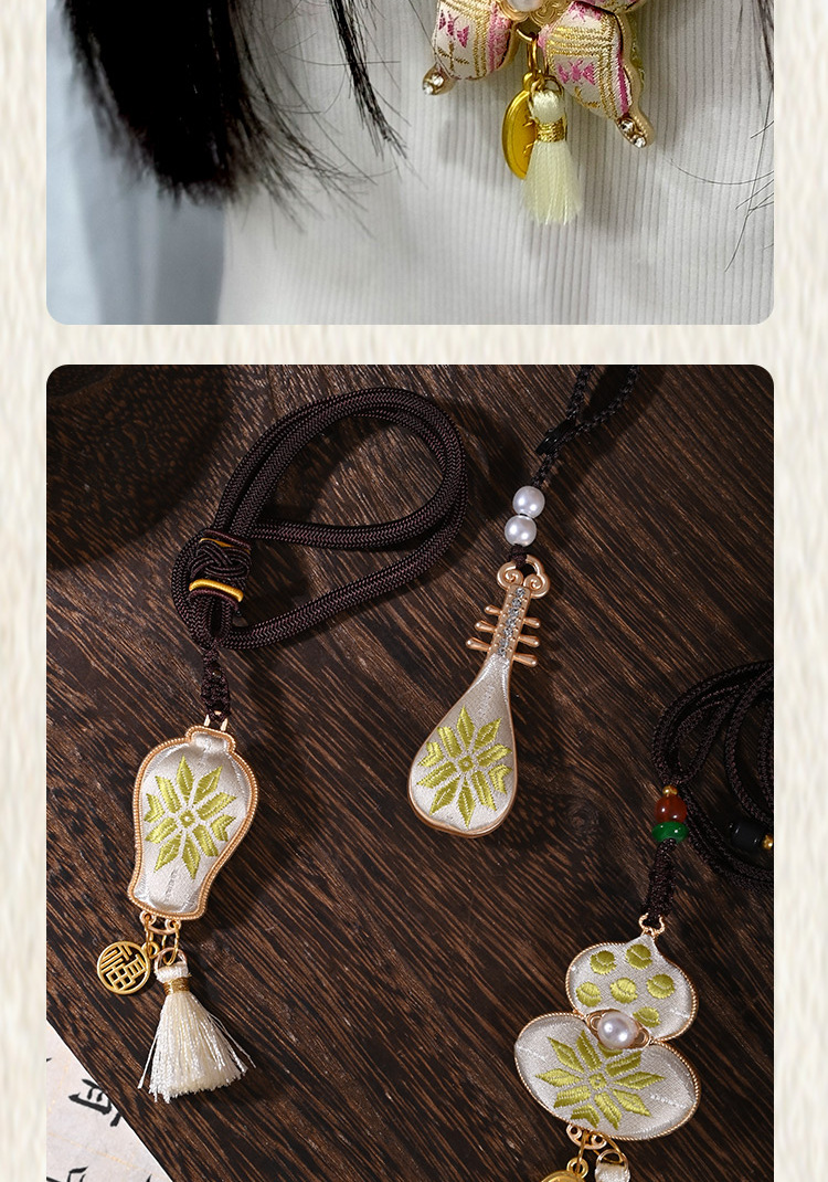 double-sided e-pipa-shaped brocade pendant