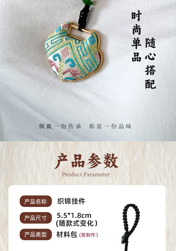 single-sided a- lock of good wishes brocade pendant