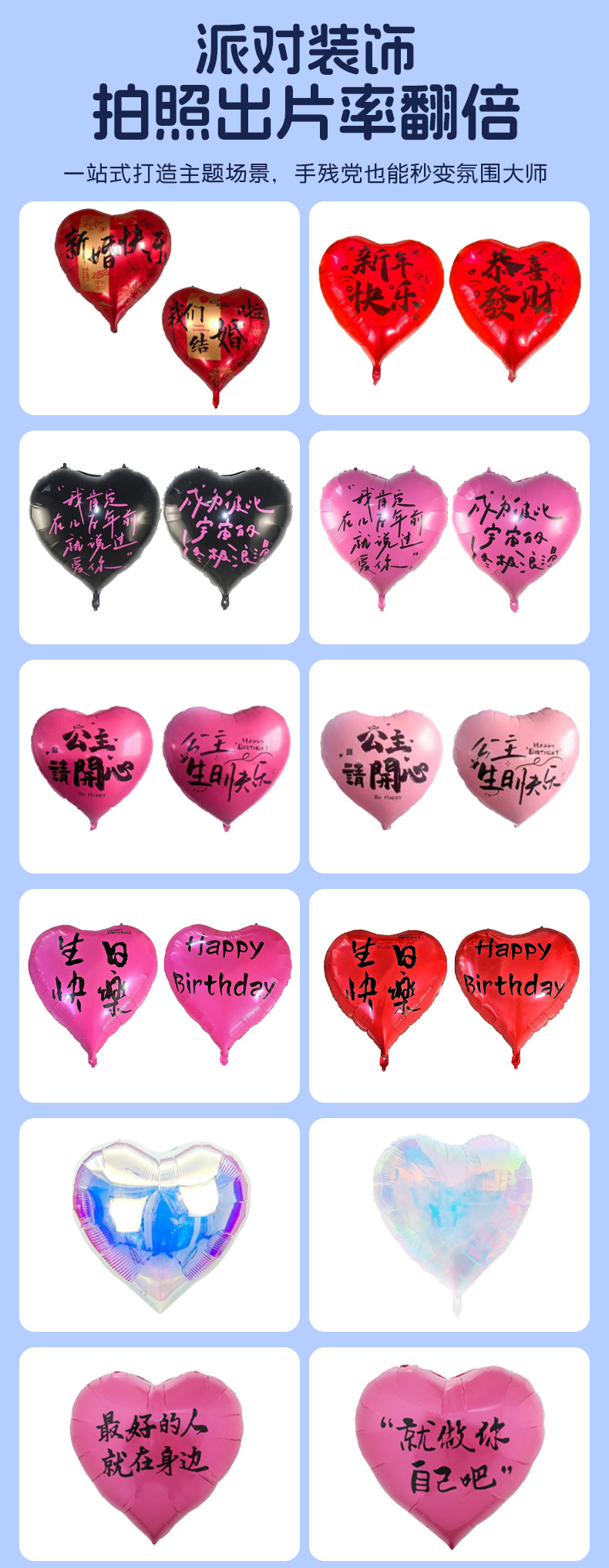 40-inch double-sided love princess happy birthday (rose red)