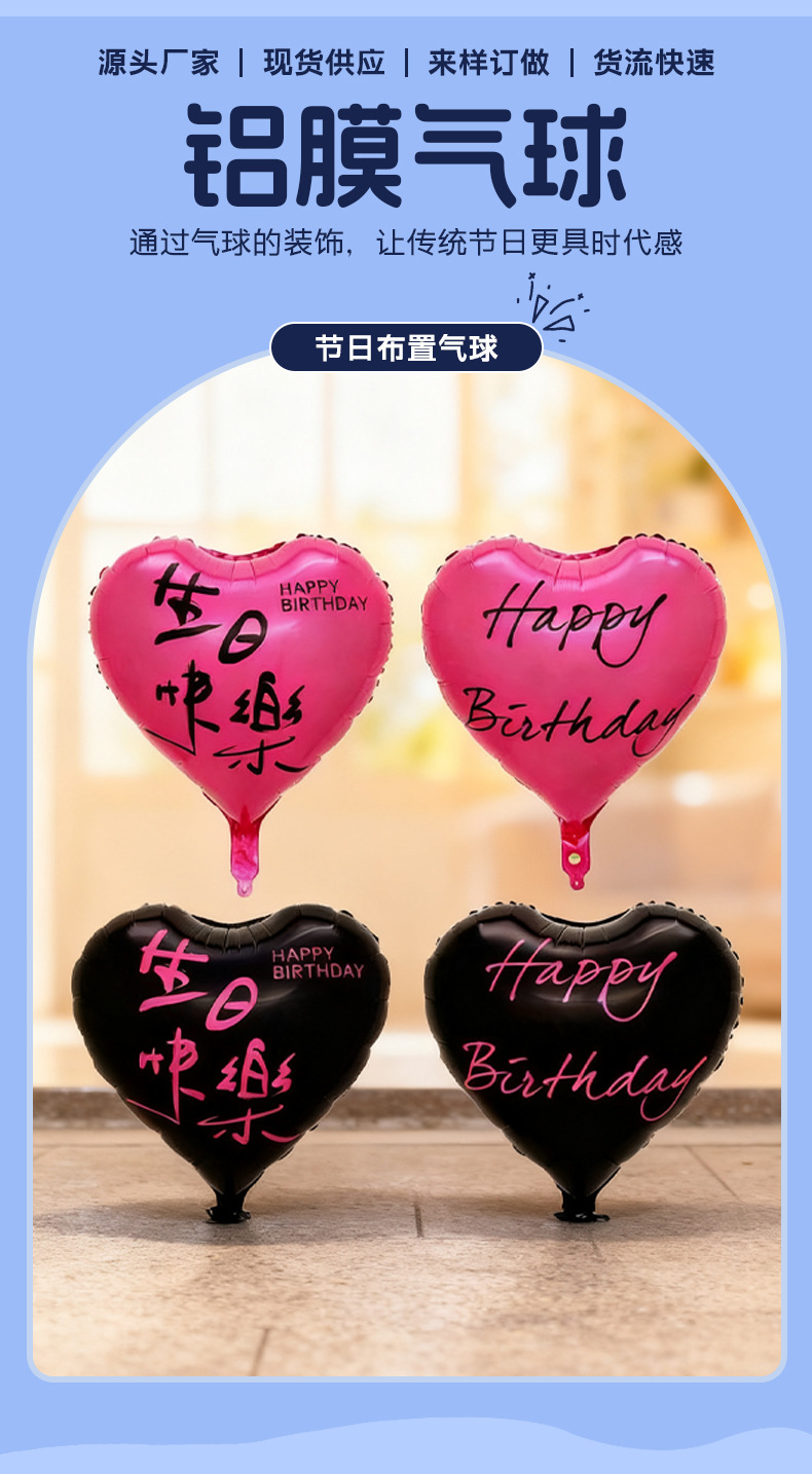 18-inch double-sided love happy birthday (black)