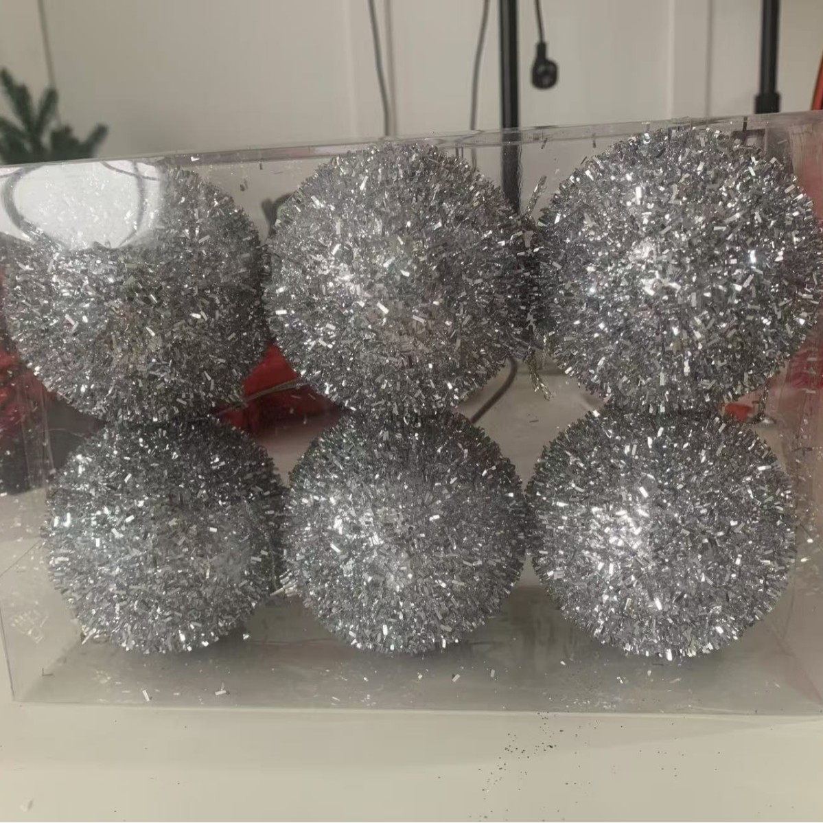 8cm fur ball silver (6 pack)