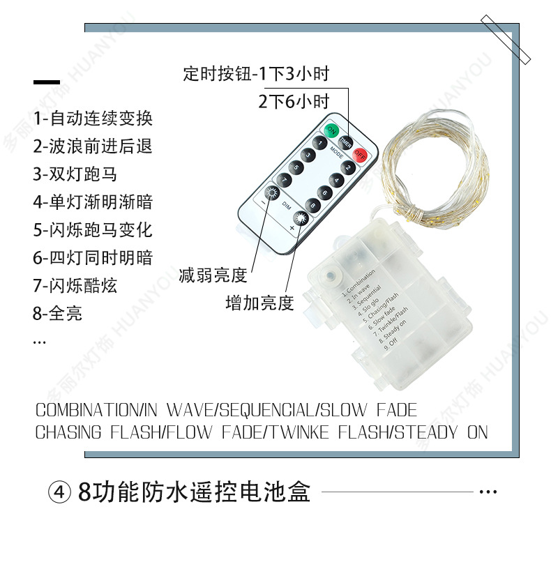 | 20 m 200 lamp waterproof remote control [8 functions] battery box | CN¥ 13.46 |