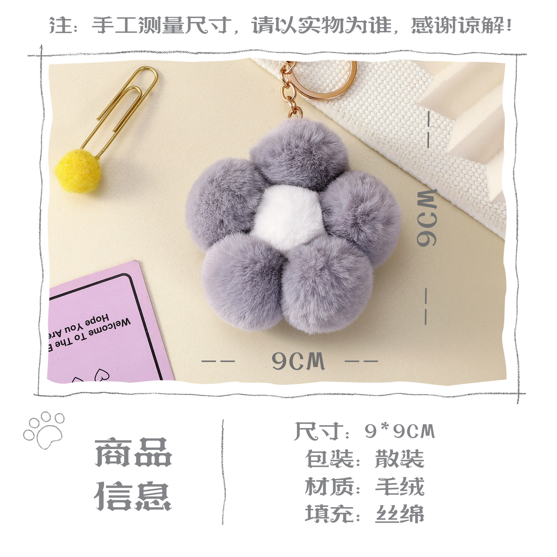 gray flower fuzzy ball pendant