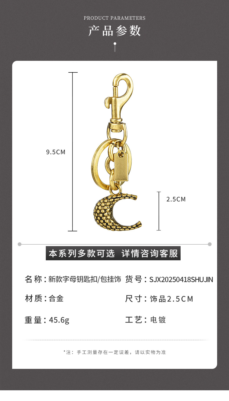 serpentine letter c handbag pendant golden gilt color