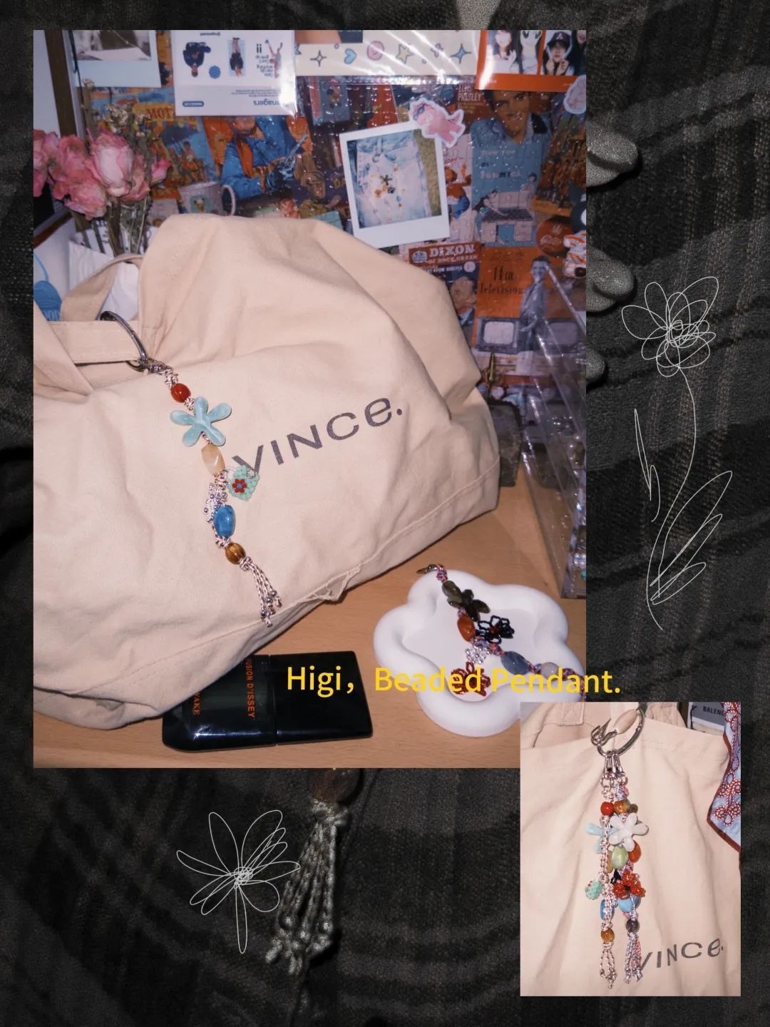 lazy summer beige flower pendant