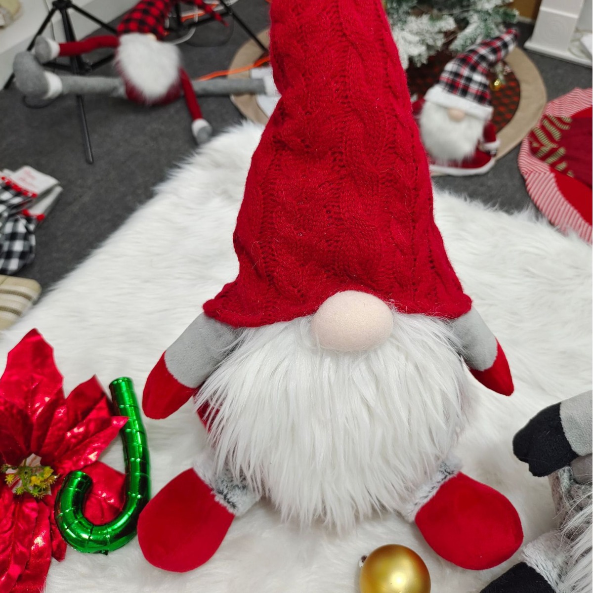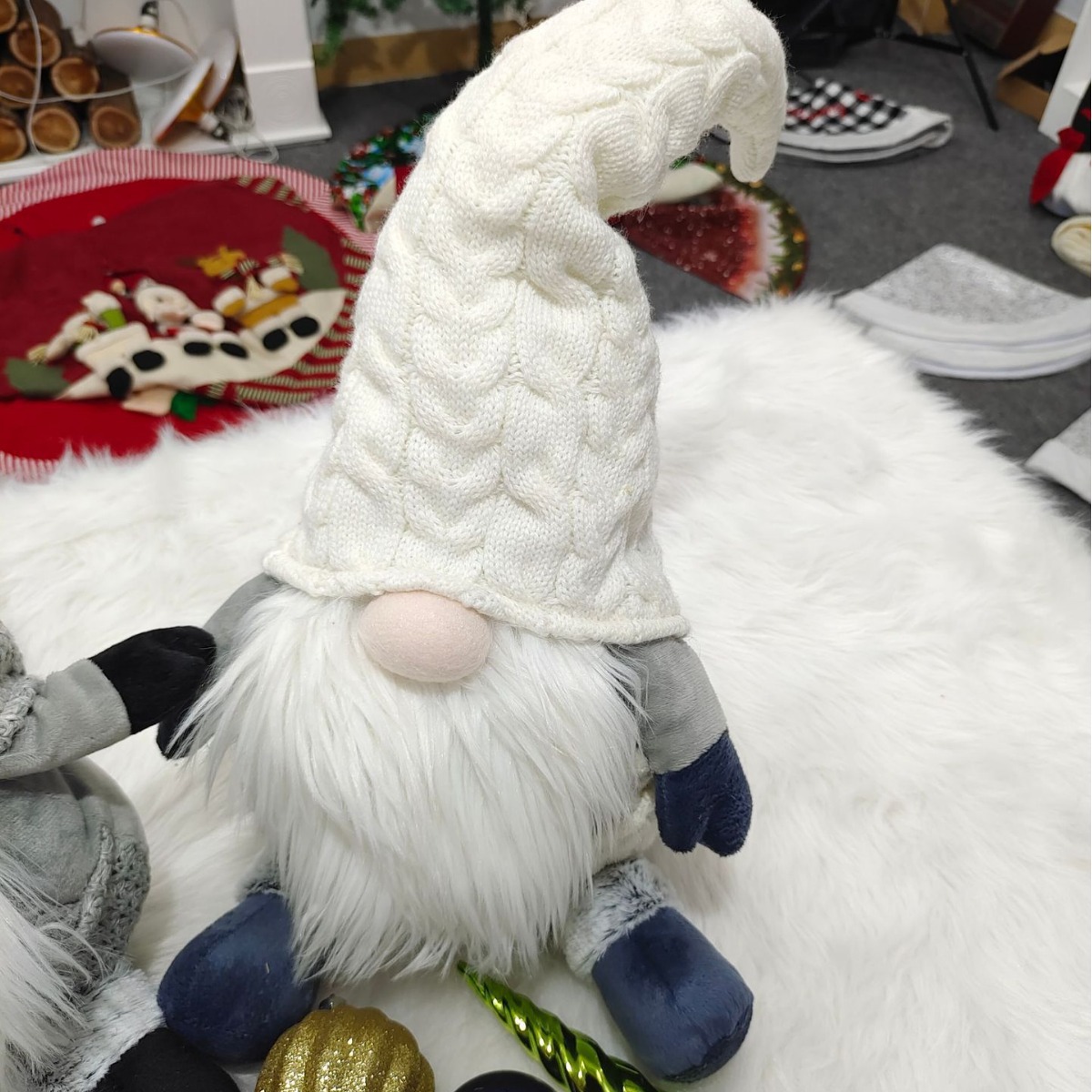 white red spherical wool cap