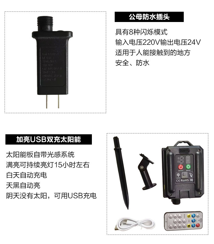 | 22 m 200 lights (upgraded and brightened usb dual charger solar + remote control)-8 mode | CN¥ 50.15 | 999999 piece available |